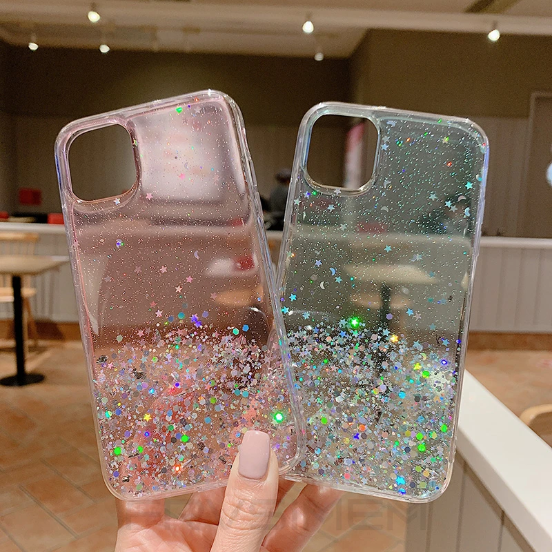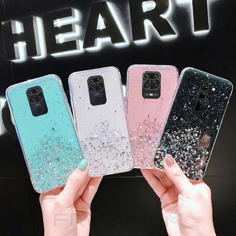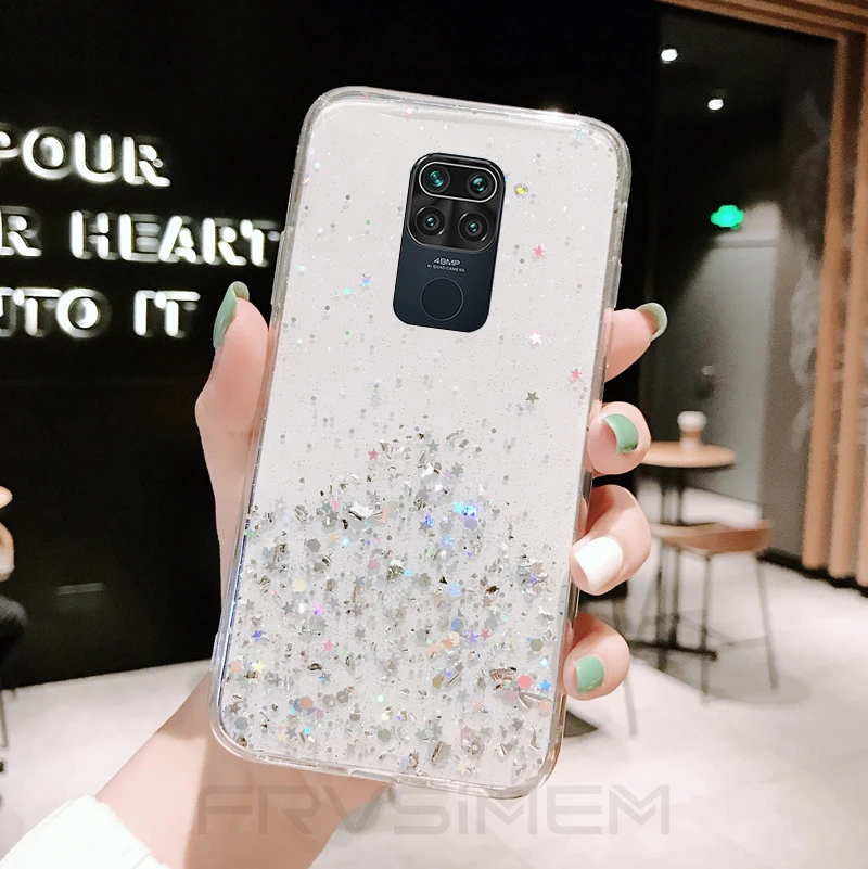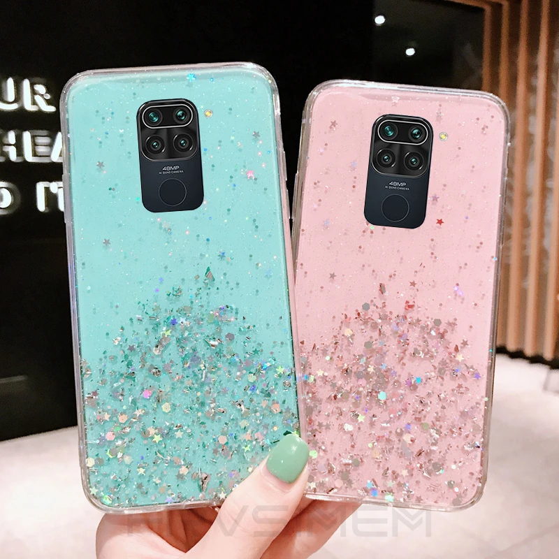 Чехол-накладка для Redmi 9 9A 9C NFC Note 9S 9 Pro Max, блестящий прозрачный чехол из серебристой фольги с блестками и звездами для POCO X3 Redmi 8 8A Note 8T 8 Pro Note9
