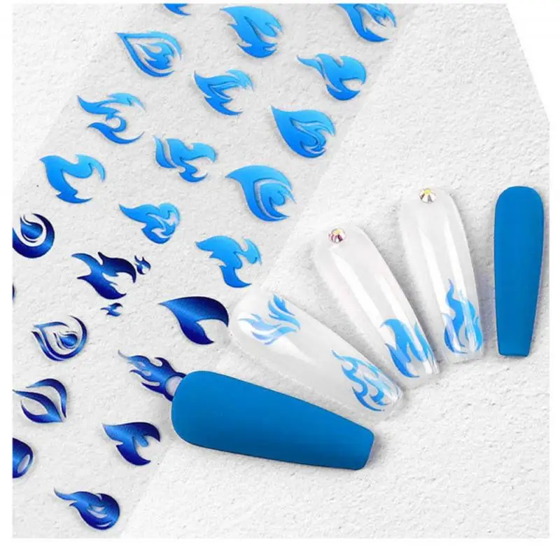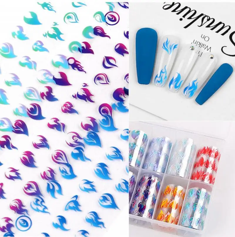4*100 смрулон голографическая ногтей Фольга пламени Стикеры s Синий Золотой ногтевое искусство, Переводные Стикеры DIY клейкая наклейка с языками пламени декорацией