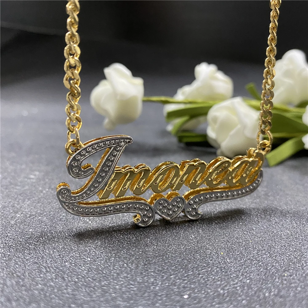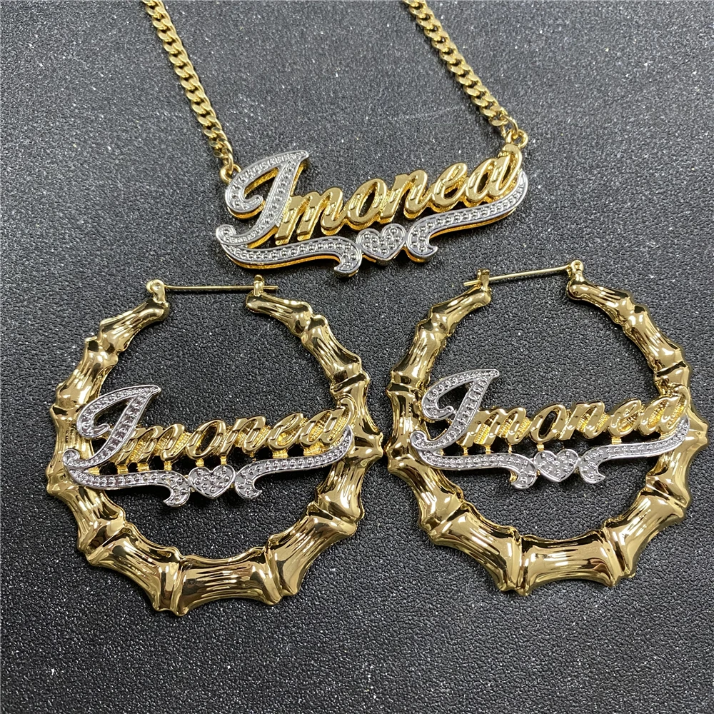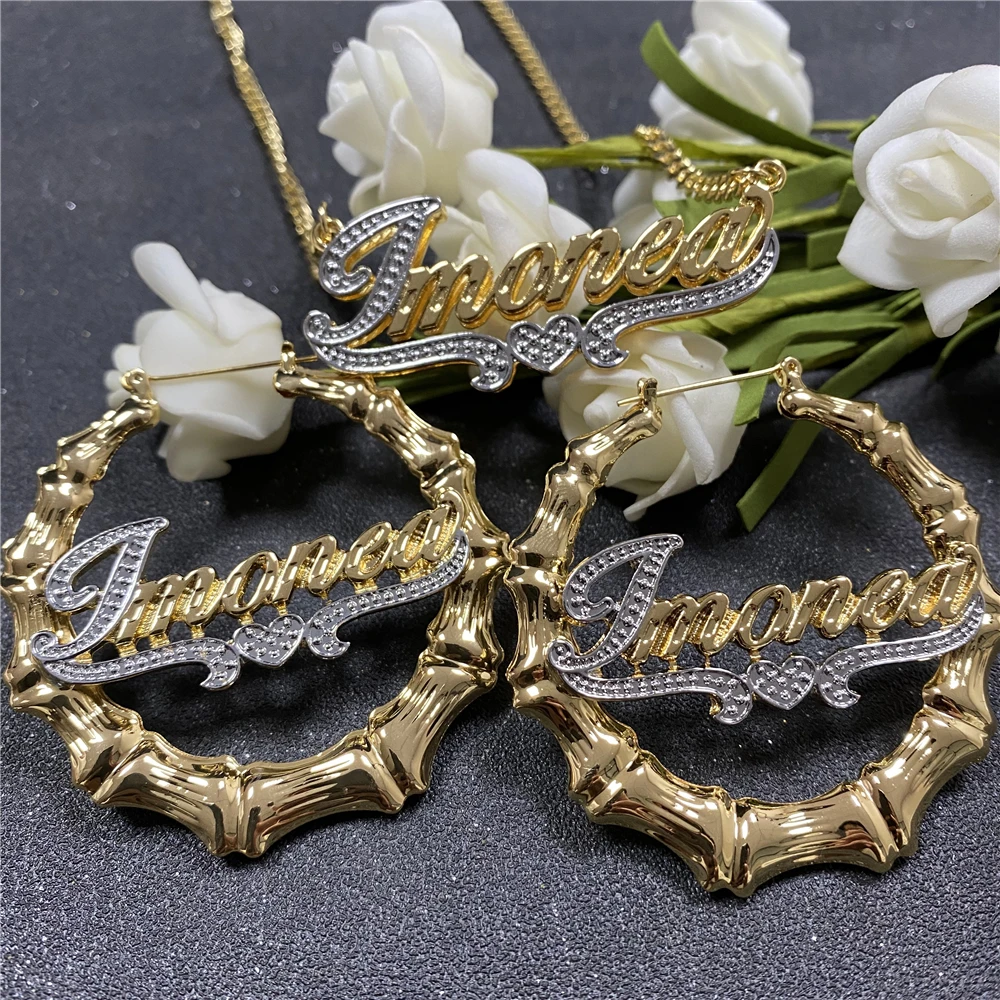 Комплект ювелирных украшений с именем на заказ, женские серьги-кольца, золотые серьги в форме сердца