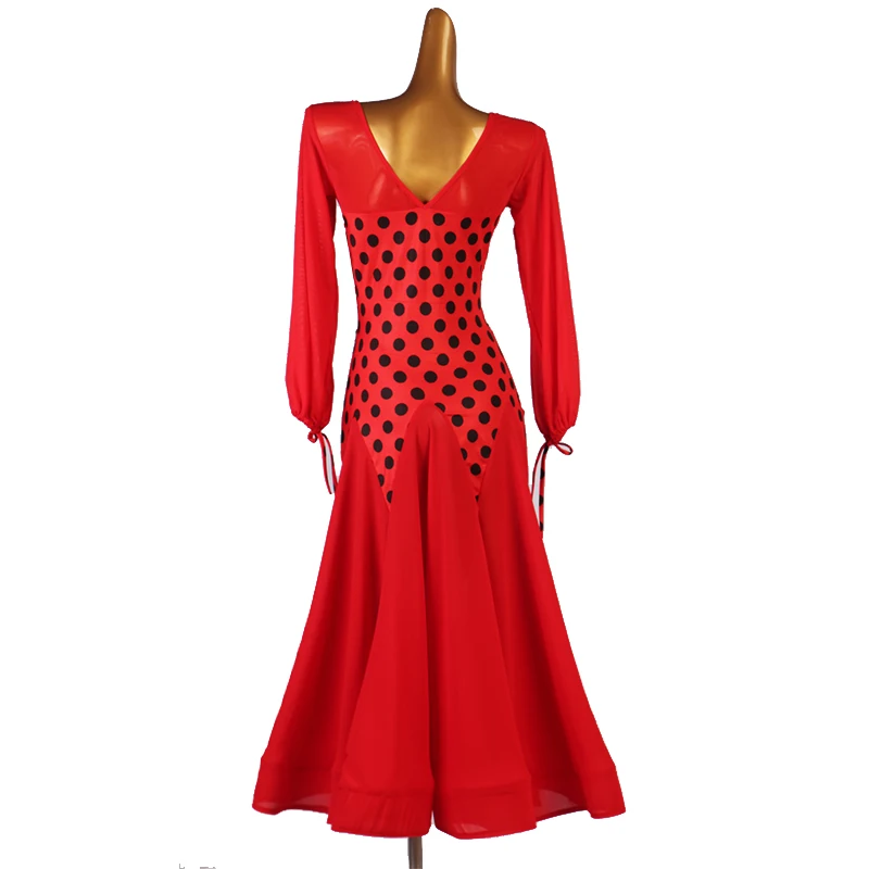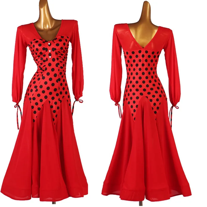 Бальные Танцевальные платья в горошек бальное платье foxtrot платье для женщин для сцены вальс бальное платье Красный Черный MQ245