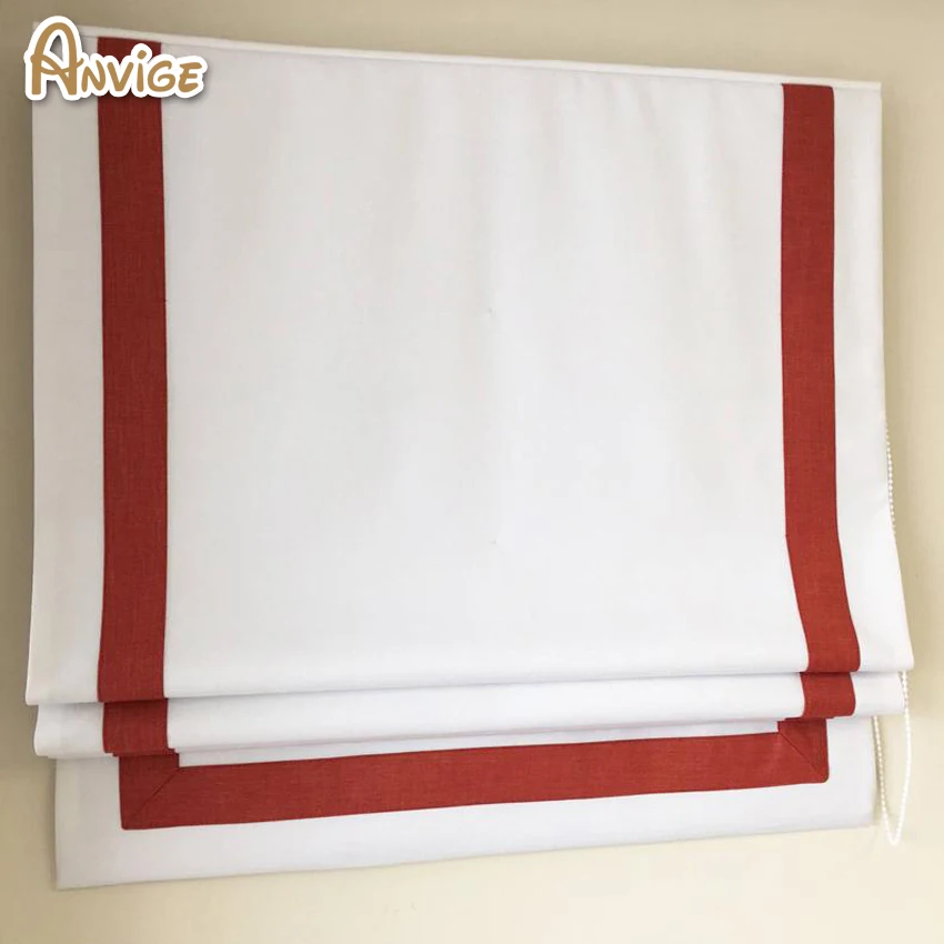 Современные красные с белой отделкой плоские римские затемнения инд...