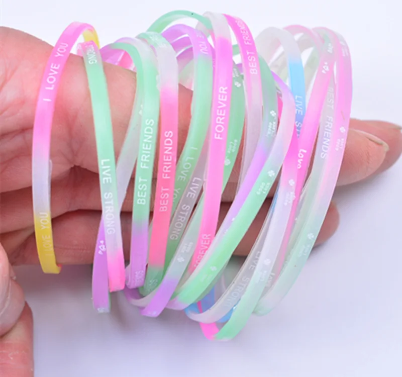 Красочные печатные буквы светящиеся силиконовые спортивные браслеты...