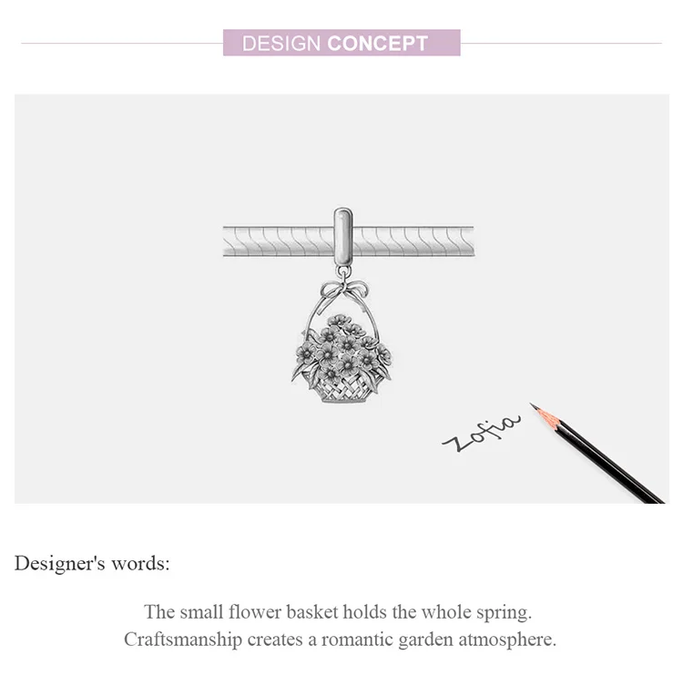 Bamoer серебро 925 пробы Цветочная корзина металлический Шарм Подхо...