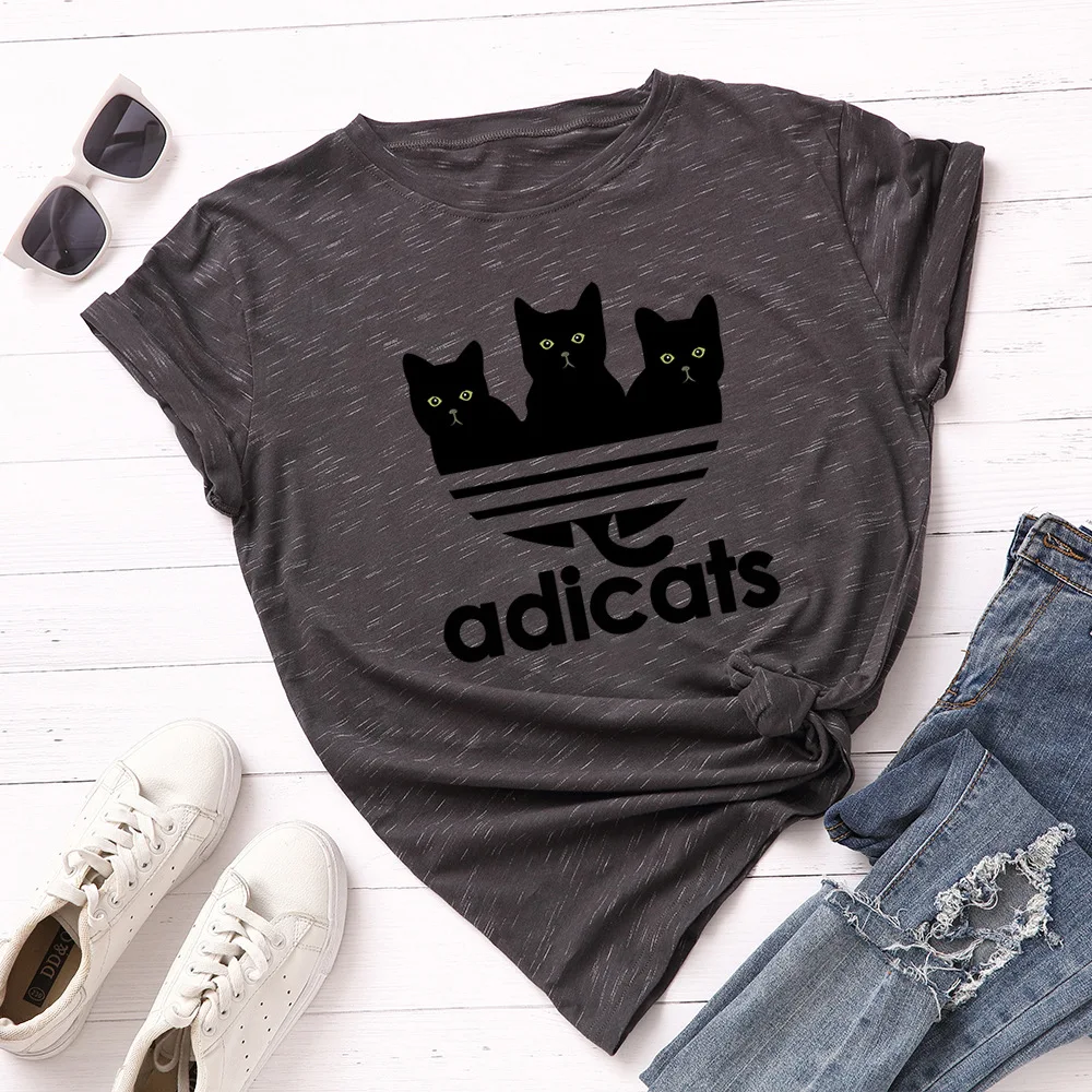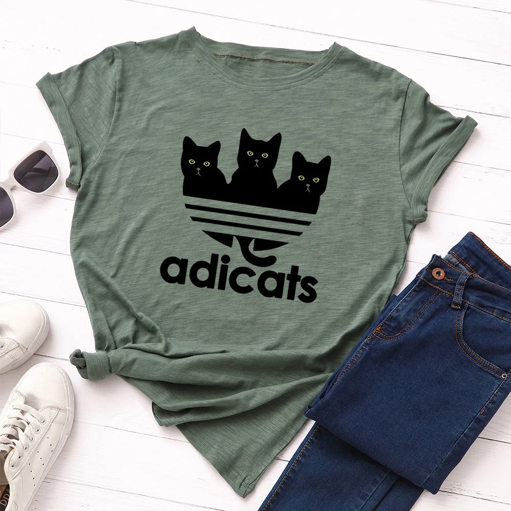 Футболка женская с милым рисунком черного кота, 100% хлопок, Повседневная рубашка с коротким рукавом, Топ 2021