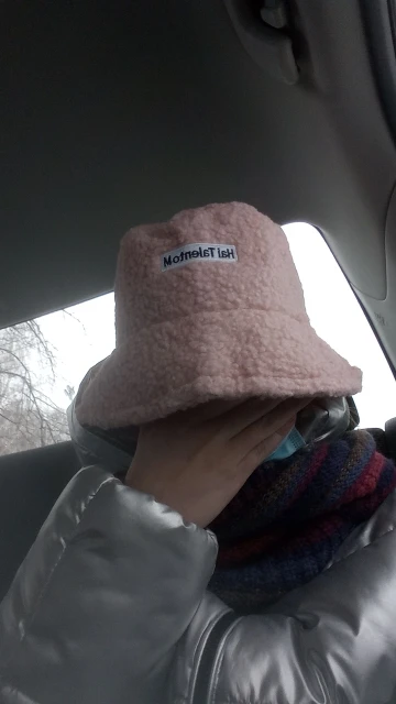 Не очень понравилась, может, я чего-то более элегантного хотела, она совсем подростковая, на голову 54 села плотно. Кстати довольно тёплая, дома в ней жарко. Но кривая какая-то, по бокам поля будто шире чем в центре. Надпись вышитая - это для тех как и я надеялся от неё избавиться, увы, никак. Внутри чёрный подклад, лента -утяжка. Приехала за 2 недели