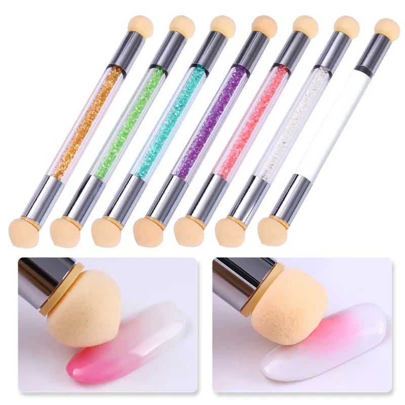 Двусторонний набор кистей для ногтей, 1 шт., градиентные губки, кисти для дизайна ногтей, акриловый гель, блестящий порошок, инструменты для нанесения точек