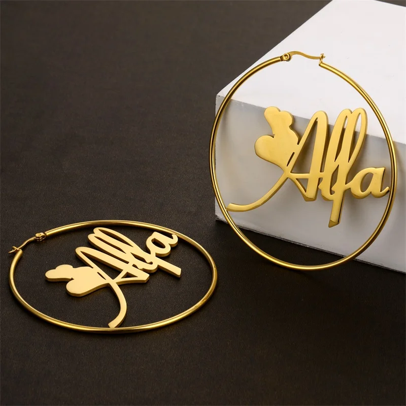 Большие серьги-кольца 30-70 мм, именные серьги на заказ, женские серьги из нержавеющей стали с табличкой с названием пользователя, подарок на Рождество, Новый год