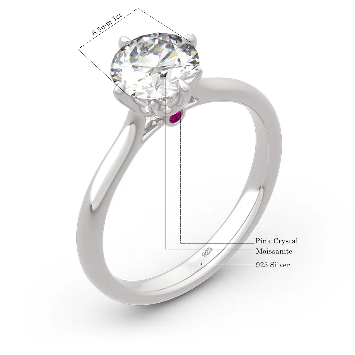 Szjinao Настоящее 1ct Муассанит кольцо для Для женщин D Цвет 925 пробы серебро 6,5 мм Обручение кольцо с розовым кристаллом изысканные ювелирные изделия Новые