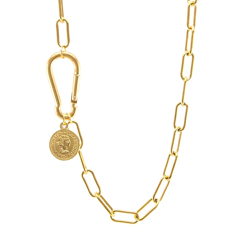Ожерелье женское из нержавеющей стали, подвеска с карабином
