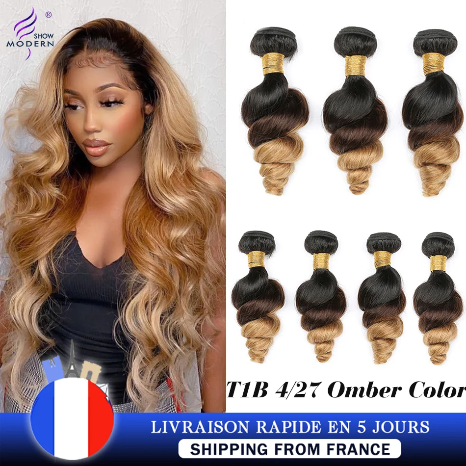 Современное шоу Remy Бразильские свободные волнистые пряди 134 шт T 1B 427 цветные Omber пучки 100% человеческие волосы свободные волнистые пучки