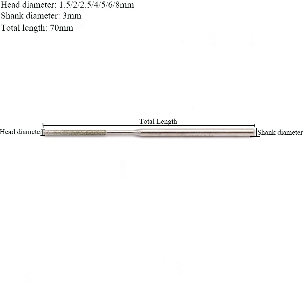 Характеристика:-Этот алмазный Бур изготовлен из алмазного зерна и CBN. Стойкость к истиранию в 3-5 раз дольше, чем у обычных шлифовальных заусенцев.-Использовать с водой в качестве охлаждающей жидкости-Гальванизированная цилиндрическая алмазная шлифовальная головка, это инструмент коррекции для обработки различных форм, стеклянных инструментов и Нефритовой резьбы.-Подходит для подвесной мельницы, электрической мельницы, пневматической гравировальной ручки, гравировальных машин, электрического оборудования. 3 мм хвостовик Алмазные Заусенцы подходят Dremel шлифовальные машины-В основном используется для полировки стекла, нефрита, ремонта абразивных и других твердых предметов. Отлично подходит для резьбы, гравировки, формовки, сверления и подачи/удаления материалаОписание:-Высококачественная цилиндрическая алмазная шлифовальная головка-Материал: бриллиант и CBN (нитрид бора). -Форма головки: цилиндрическая-Диаметр головки: 1,5 мм, 2 мм, 2,5 мм, 4 мм, 5 мм, 6 мм, 8 мм.-Диаметр хвостовика: 3 мм-1/8 дюйма-Общая длина: 70 мм.Посылка включает в себя: согласно вашему выбору.