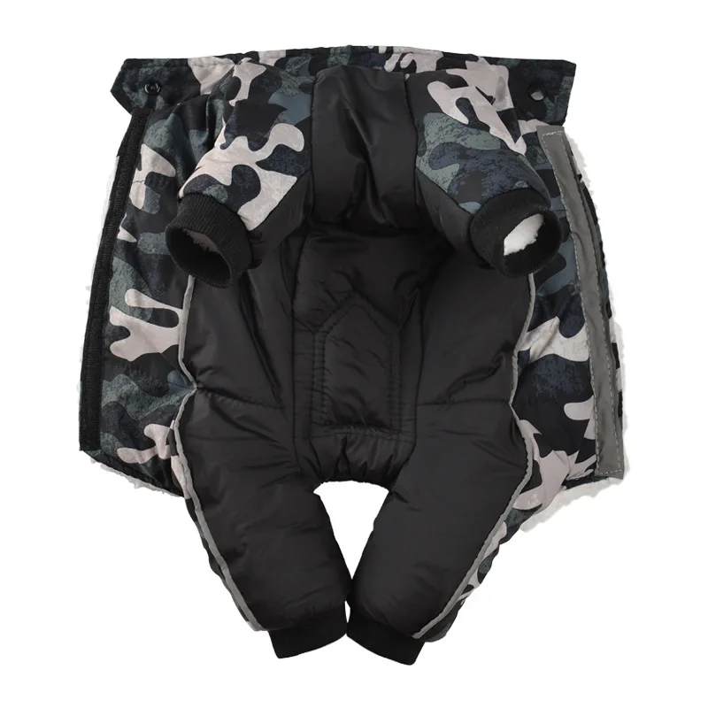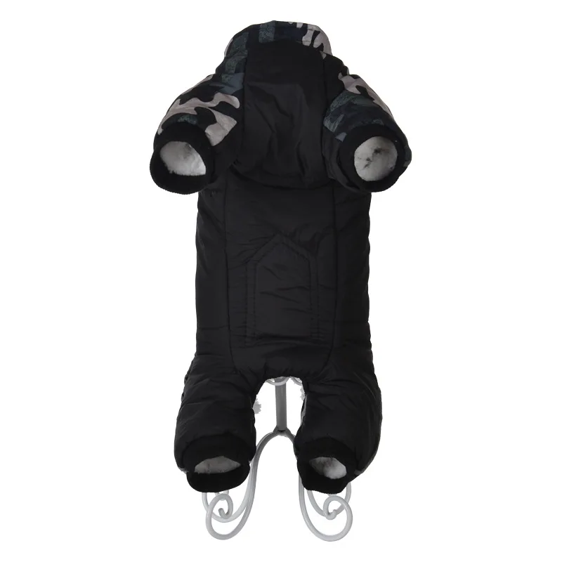 Костюм красивый, теплый. Но нет места для мочи собаки, живот полностью закрыт