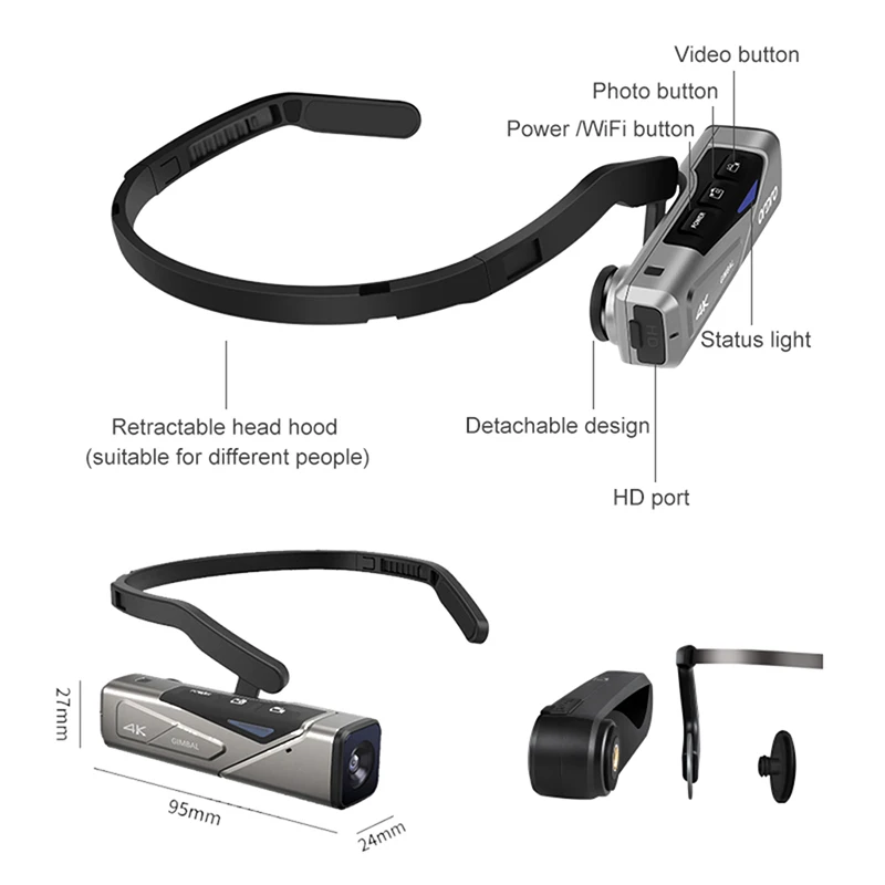 Камера с разрешением 4K/60 кадров в секунду-встроенный 1/3 дюйма Sony 13.0MP CMOS сенсор с высокой чувствительностью. До 20.0MP все еще доступны изображения и несколько видео-разрешений. UHD: 3840x2160 (60 кадров в секунду/30 кадров в секунду), FHD: 1920x1080 (60 кадров в секунду/30 кадров в секунду).4K камера-регистратор с 2-оси gimbal против тряски -- эффективно избежать вверх и вниз дрожания для удовлетворения ваших повседневных фотографии потребности.Вид от первого лица, запечатлейте то, что вы видите-конструкция с креплением на голову, Освободите руки. Подходит для дизайнеров, гурманов, электроинженеров, докторов, скульпторов, художников и т. д. запечатлейте именно то, что ваши глаза могут видеть, например. Ваш ребенок или питомец и т. д. встроенный литиевый аккумулятор 4,35 в 1000 мАч, поддерживает запись видео около 2 часов.Smart APP & Remote Control -- загрузите приложение «OD Cam», сканируя qr-код в инструкции по эксплуатации или выполните поиск Google Play для Android и Apple APP Store для системы iOS. Приложение «OD Cam» превращает ваш смартфон в пульт дистанционного управления в реальном времени, с помощью которого вы можете управлять видеокамерой (допустимый диапазон: 5 м).Мы предлагаем 1 год гарантии и отличное обслуживание клиентов. Если у вас есть какие-либо вопросы, пожалуйста, не стесняйтесь обращаться к нам.