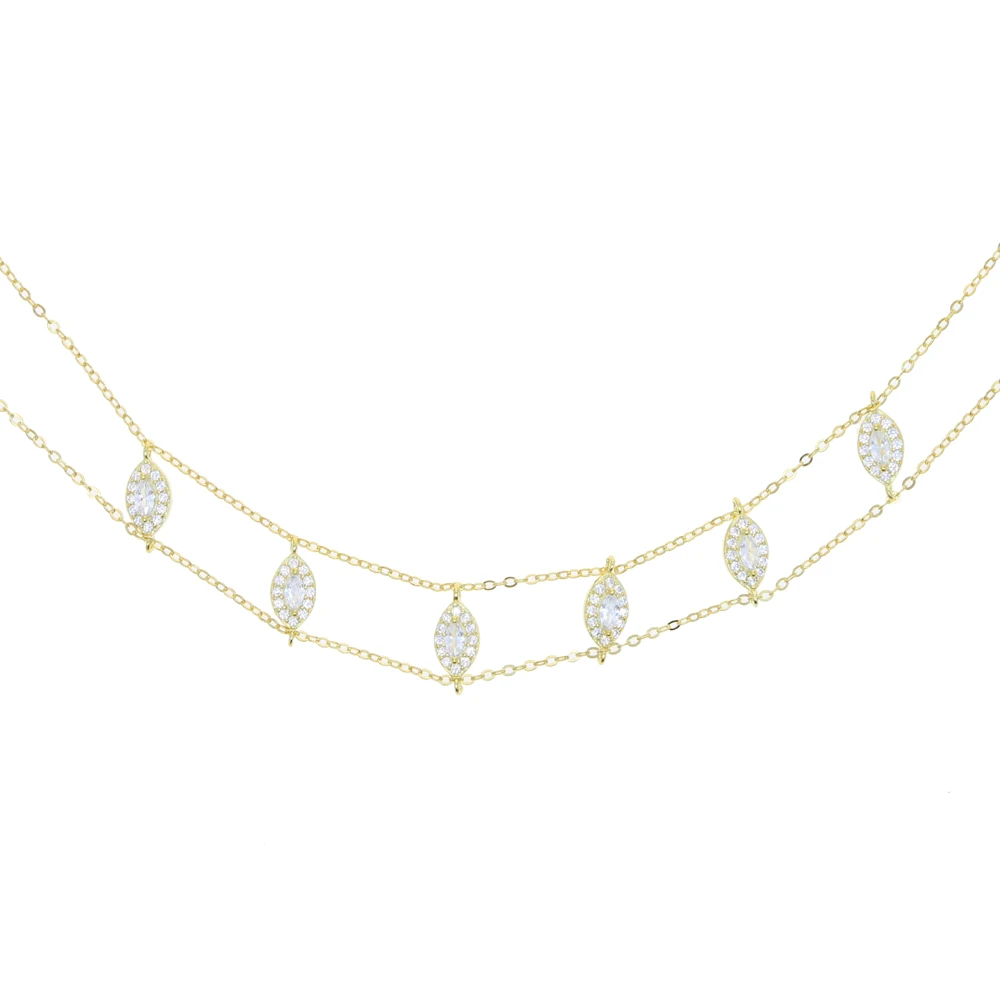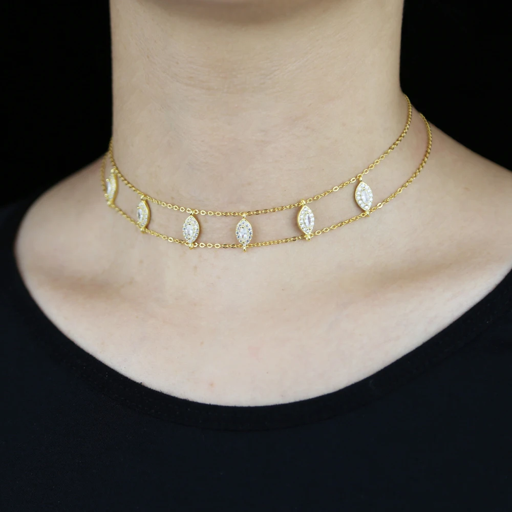 100% Стерлинговое Серебро 925 пробы, сверкающая CZ Свадебная помолвка, Женские Ювелирные изделия, маркиза CZ, Двойная Цепочка, женское колье