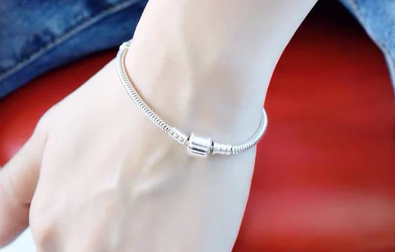 Браслет из серебра 925 пробы с сертификатом, роскошный тонкий мягкийГладкий Браслет-змейка 3 мм, бусины сделай сам, основа для браслета и браслета 16-23 см S005
