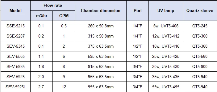 1 pcsx 0,5 gpm УФ Дезинфекция(Включает камеру, лампу, кварцевый рукав)1 шт. x балласт2 шт. х фитинги (локоть 1/4 "push in)2 шт. x кронштейны