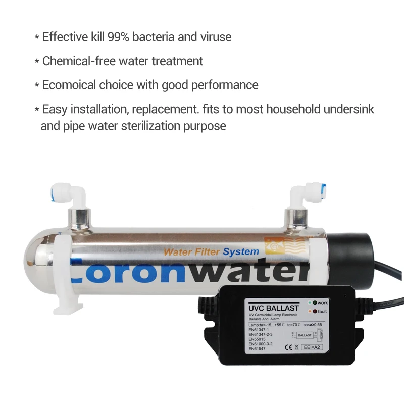 Coronwater 0,5 gpm уфл дезинфицирование систем разработана таким образом, чтобы впитать с домашнем хозяйстве, квартиры и кухни, колодезной воды очистки для стерилизации бактерий, вирусов и protozoan в вашем доме с водой.