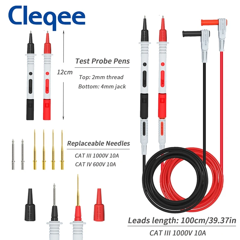Мультиметр Cleqee P1033B, комплект измерительных щупов с 4 мм банановыми разъемами, щупы для проколов, автомобильный испытательный кабели зондов, 16 шт.