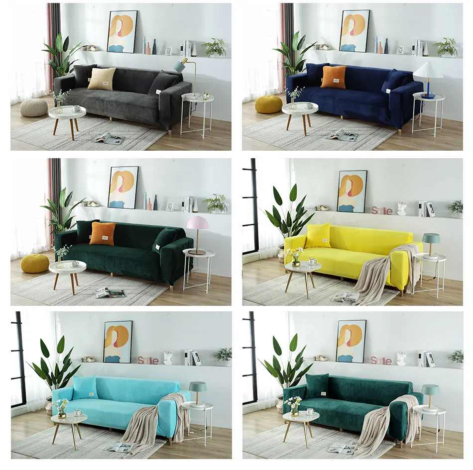 Однотонный Бархатный Чехол для дивана, эластичный чехол для кресла в гостиную, L-образный эластичный чехол для угловой кушетки с наволочкой