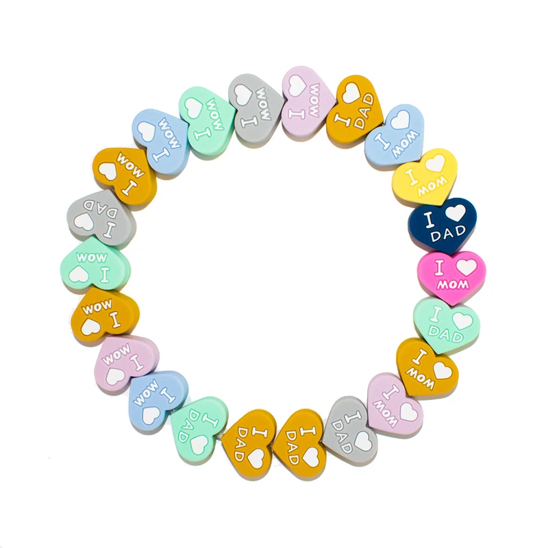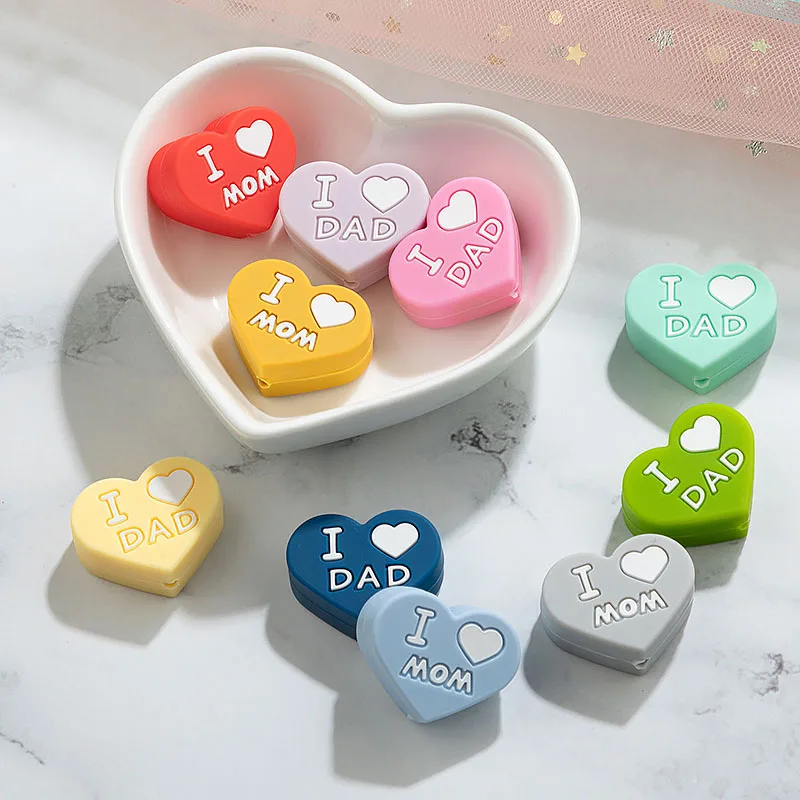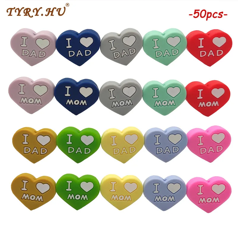 TYRY.HU 50 шт. пищевого силикона «Я люблю маму/папу» силиконовые сердечки прорезывания зубов из бисера BPA бесплатно детский силиконовый жевательный бисер BPA бесплатно