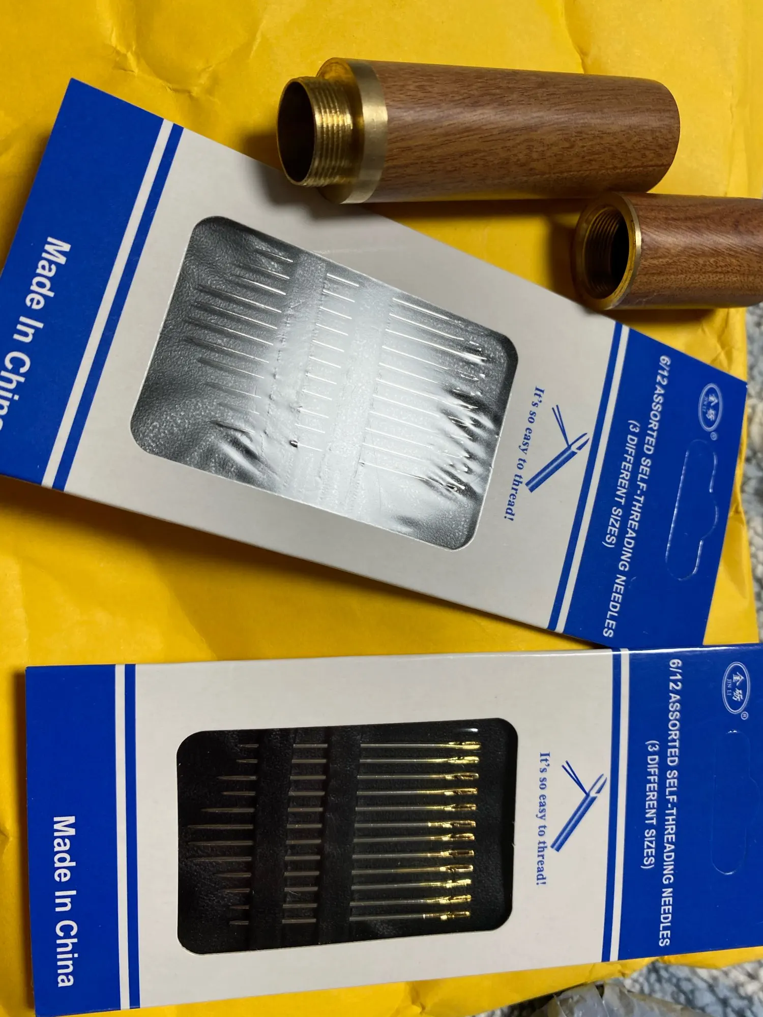 Иглы пришли очень быстро, соответствуют описанию. Чтобы нитка не выпадала при шитье, нужно приспособиться. Пробовала шить очень плотную ткань тонкой ниткой, все хорошо. Нить вдевать в такую иглу - одно удовольствие) Тубус для иголок без зазубрин, очень стильный, можно использовать для зубочисток или чего-то ещё мелкого и нужного в дороге. Продавца и товар рекомендую. Спасибо!