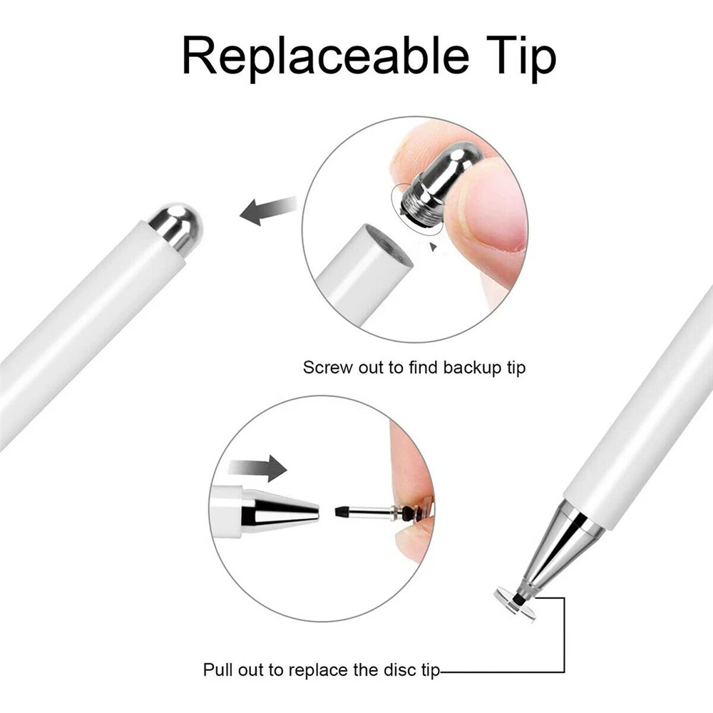 Особенности стилусов:Корпус ручки из алюминиевого цилиндра, положение наконечника диска соединено металлическими стальными шариками для улучшения срока службы и двойной долговечности. Оба конца являются заменяемыми, обеспечивая плавное написание ручки для ваших тачскрин планшетов и смартфонов.