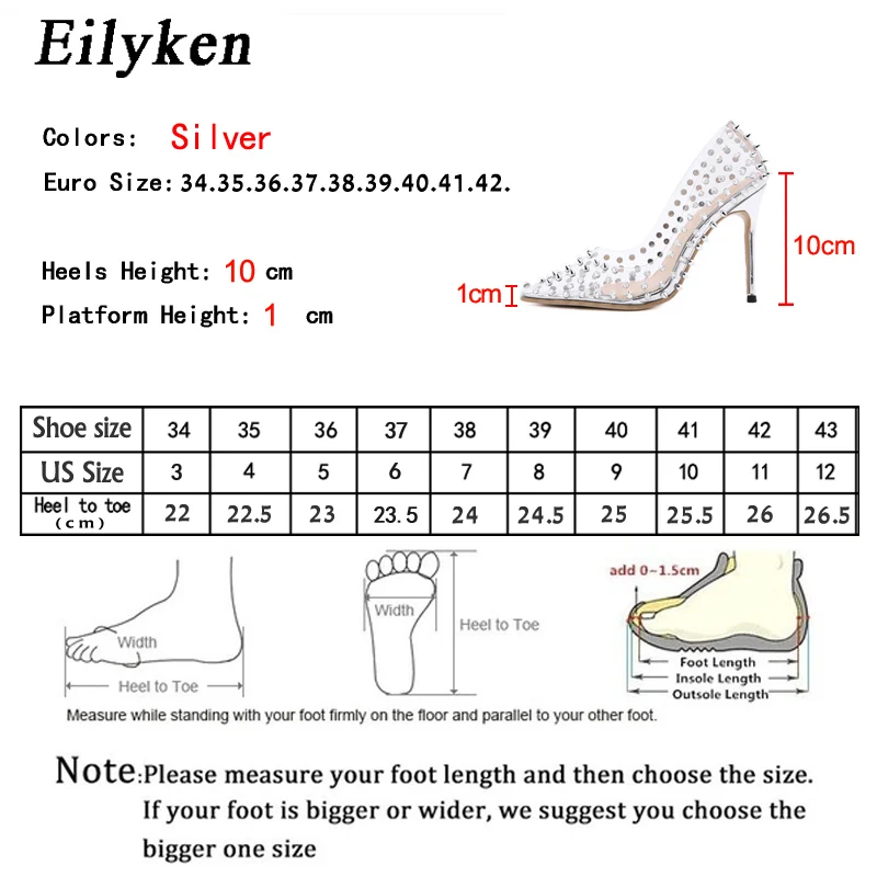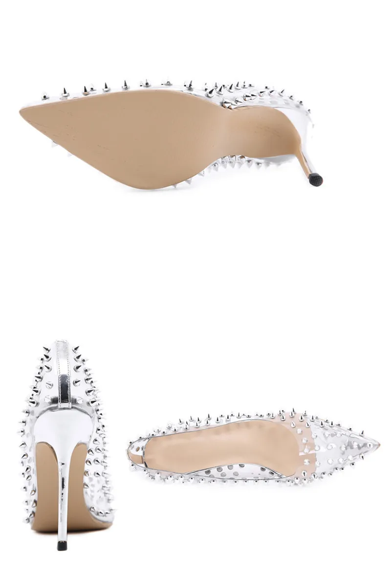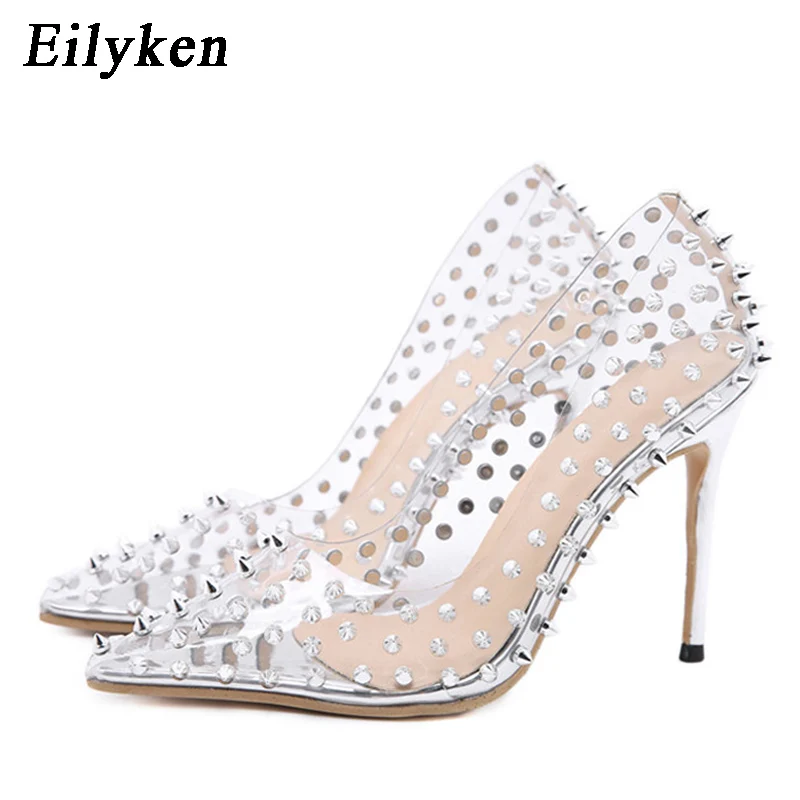 Eilykenпрозрачные туфли-лодочки из ПВХ с заклепками; Женские вечерние туфли на высоком каблуке-шпильке с острым носком; Танцовщица стриптиза в ночном клубе обувь