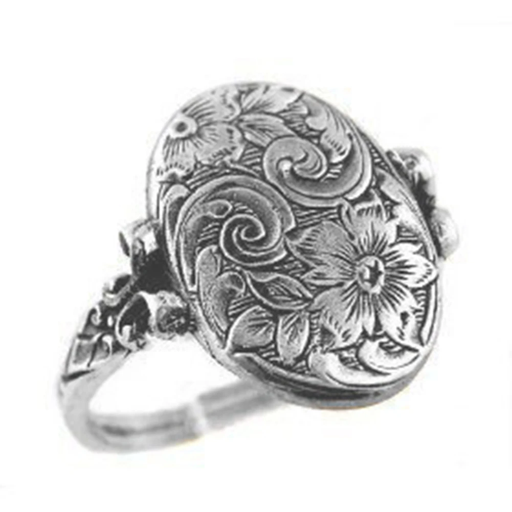 Кольцо женское, серебристое, с резьбой в виде цветка