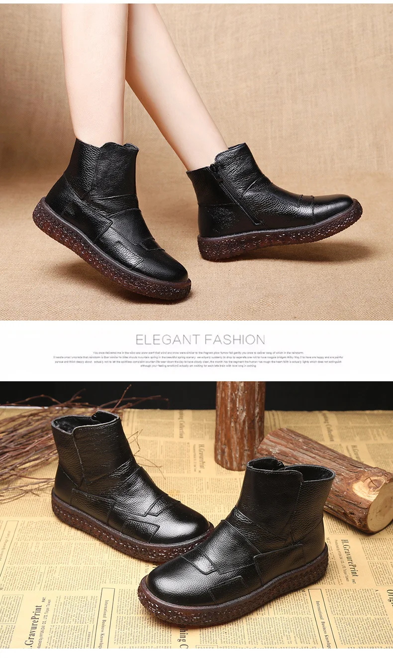 Ботильоны женские из натуральной кожи, ботинки ручной работы в стиле пэчворк, мягкая обувь на плоской подошве, удобные повседневные Мокасины, ботильоны на молнии, зима