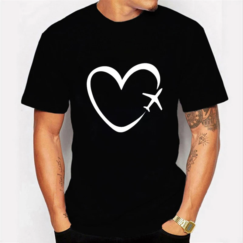 Футболка мужская, с принтом сердечного ритма, с принтом Love, с кор...