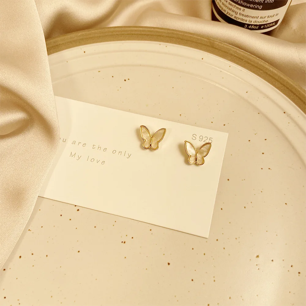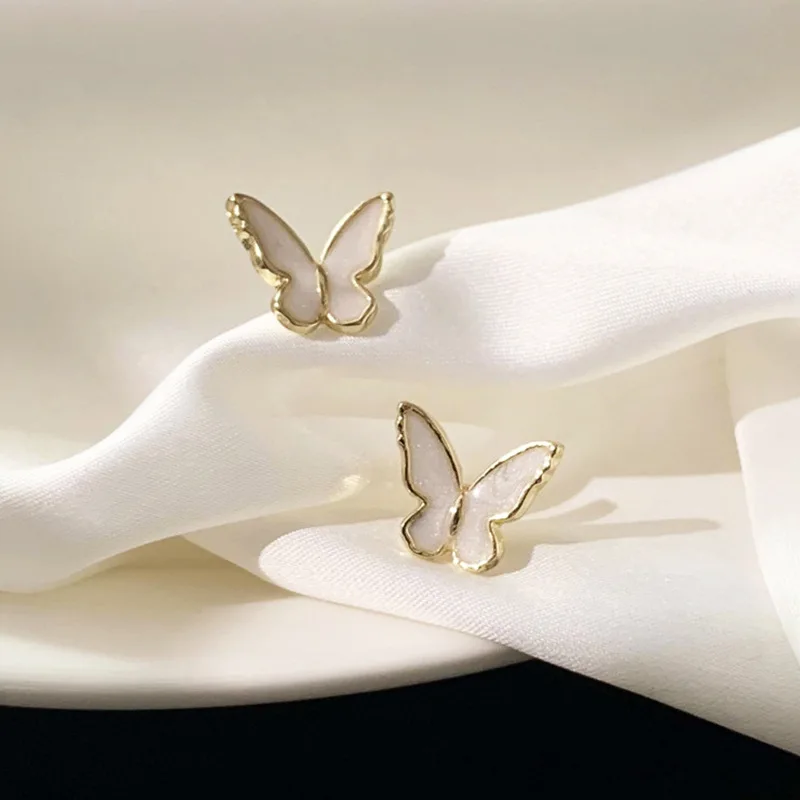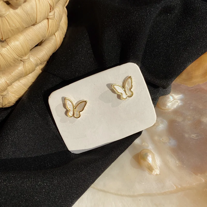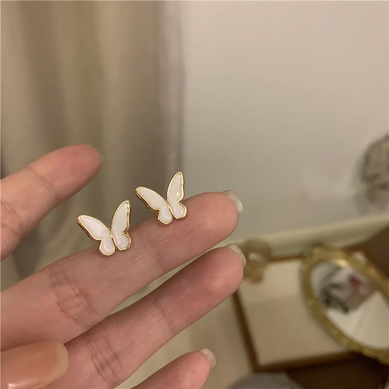 Модный милый романтический Стиль белый броши в виде бабочки из раковины Стад Серьги женские сережки в виде животных серьги назначение ювелирные изделия Gfits