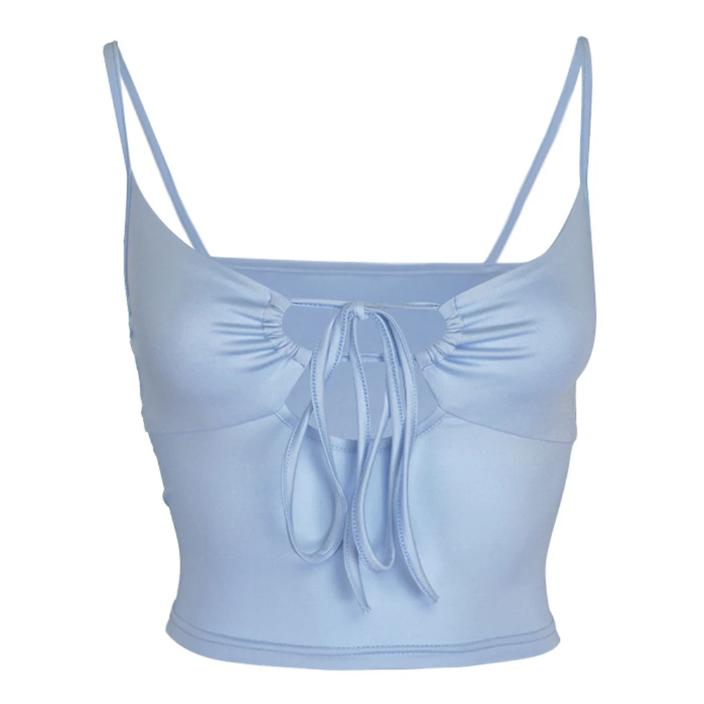 Женский ажурный топ на шнуровке, летний однотонный облегающий клубный Повседневный укороченный топ без рукавов с V-образным вырезом и глубоким вырезом