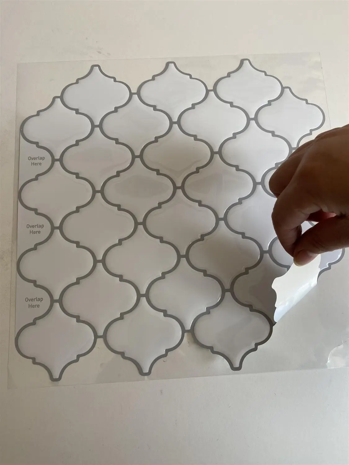Перекрывающая самоклеящаяся настенная плитка (пилинг и палочка) является важным шагом для успешной установки. Этот шаг, часто упускаемый из виду, состоит в том, чтобы приклеивать линии плитки друг к другу, чтобы они совпадали. Только небольшая часть плитки будет прилипать к другой.
