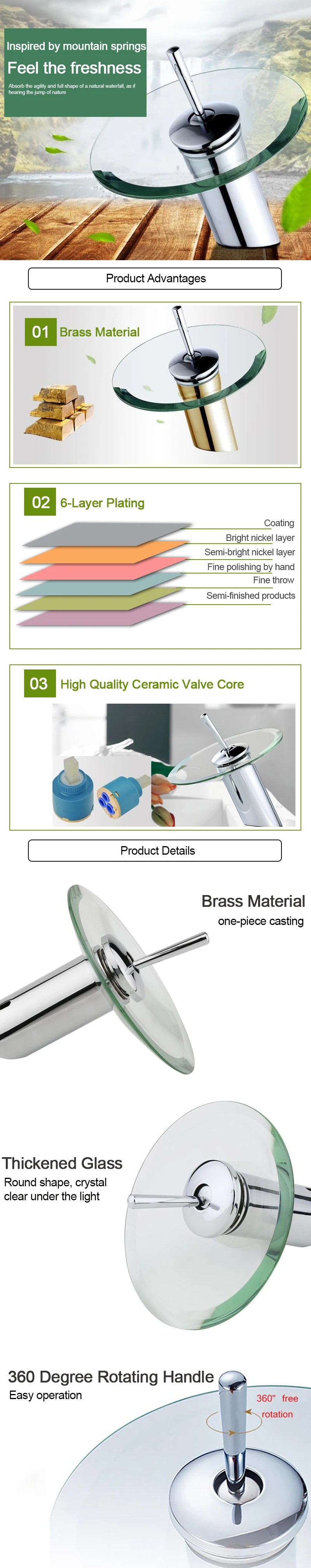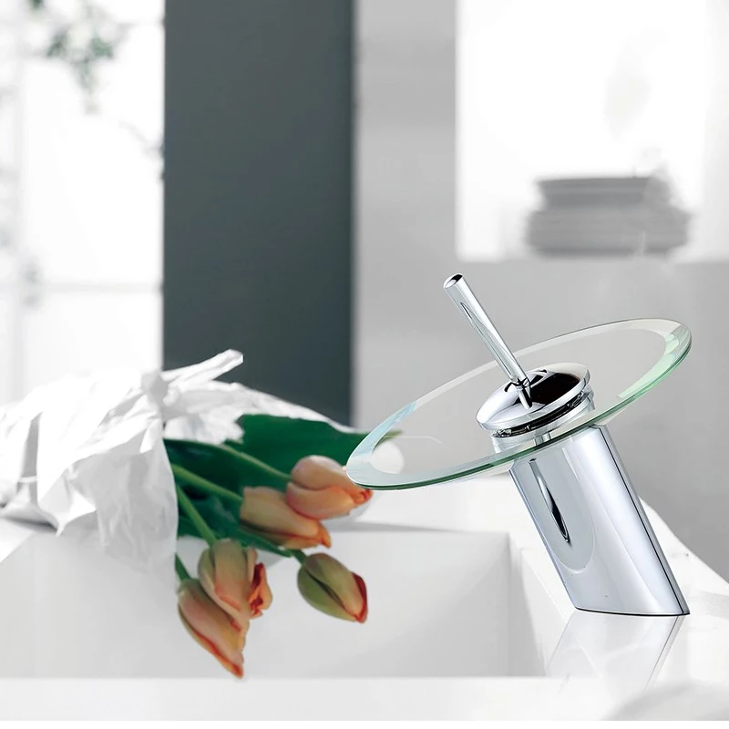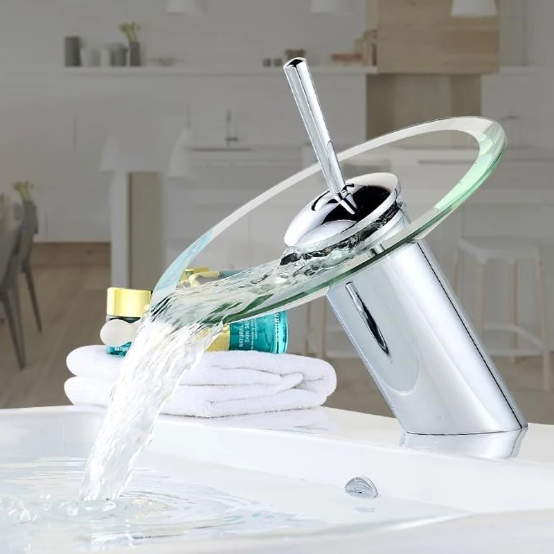 Ванная комната Водопад кран Стекло водопад бортике кран для раковины, кран для раковины, кран смесителя однорычажный кран горячей и холодной воды