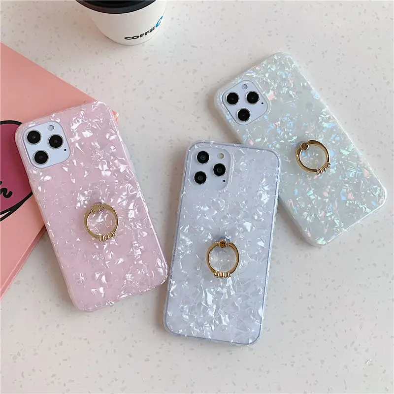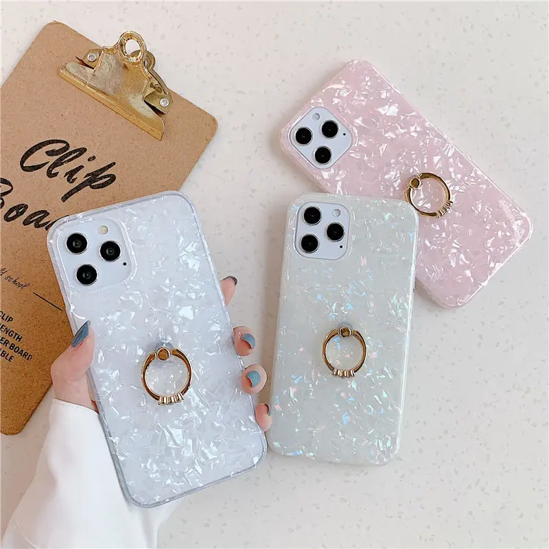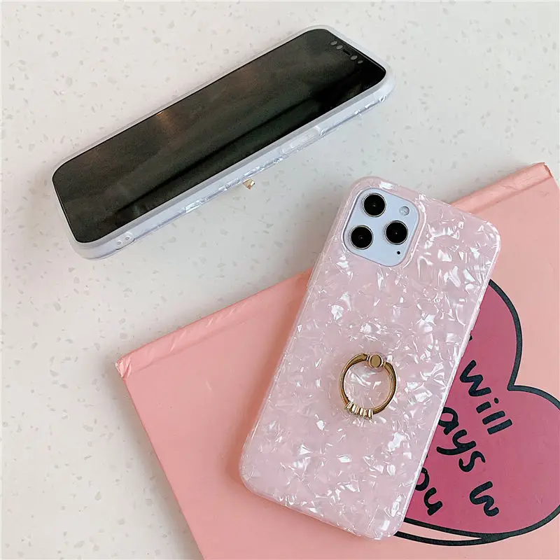 Мраморный чехол с кольцом-держателем для iPhone 12 11 Pro Max XR XS Max X 7 8 Plus 12 Pro Max, Блестящий Мягкий IMD задний Чехол