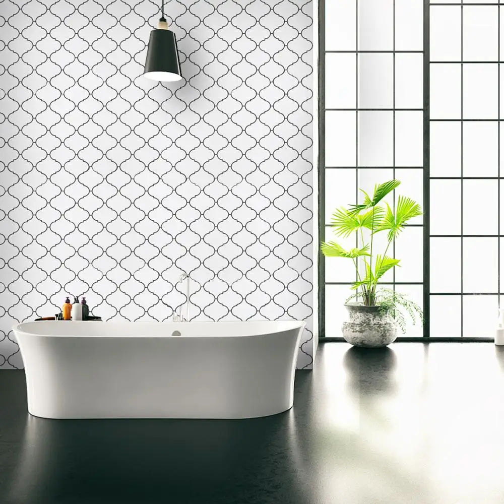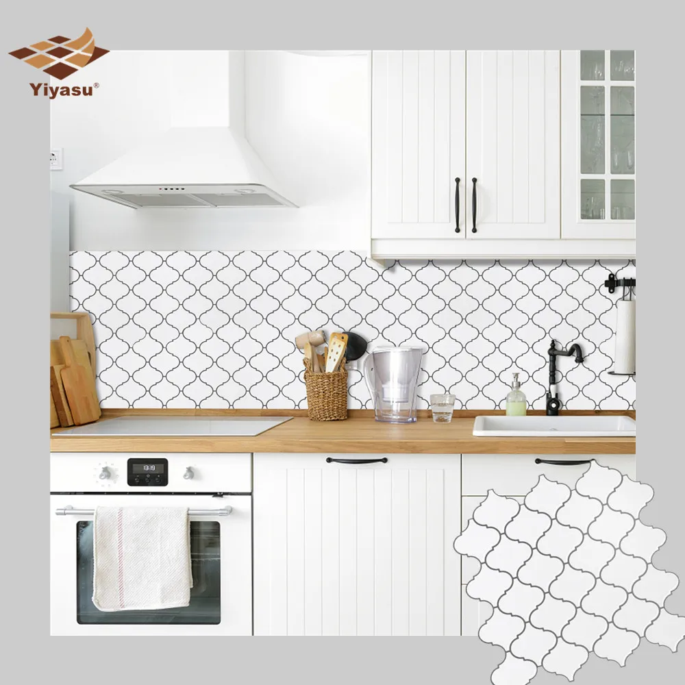 Настенная плитка с белым арабским фонариком, виниловая 3D наклейка, самоклеящиеся обои, квадратные, для кухни, ванной комнаты