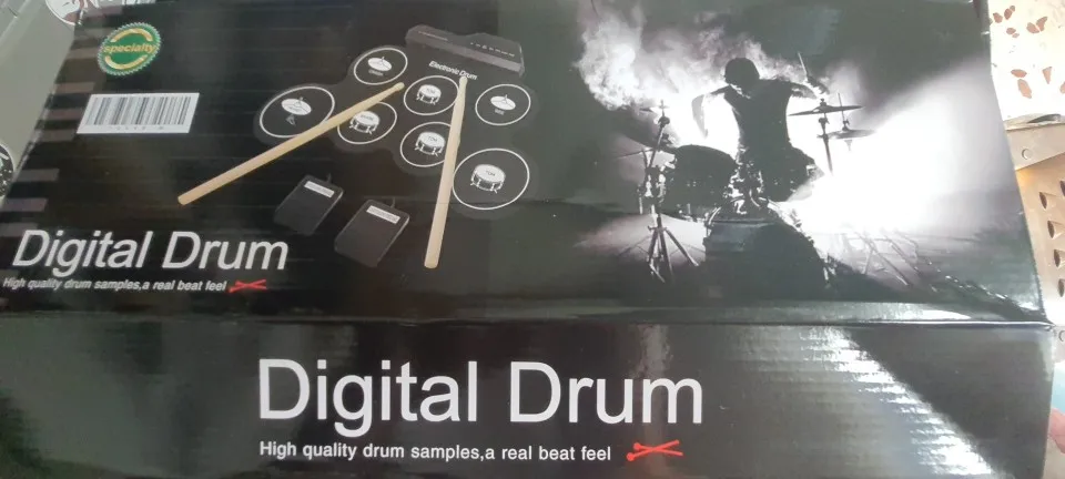 Характеристики:Цвет: черный + белыйМатериал: силикон + пластикТона барабанной установки: поп, рок, Латинская, Электронная, перкуссионнаяДемо-песни: Heavy Rock, Funk, латинские, танцевальные, Самба, ча-ча, качели Hi-Hat, Upbeat RockПитание: 2 * батарейки типа "ААА" (не входит в комплект) или USB-кабель (входит в комплект)Размер товара: 49,5*38*3 см/19,5*15 * 1.2inВес изделия: 752 гПосылка: 54,5*40*4,5 см/21,5*15,7 * 1.8inВес посылка: 1552 г/3,4 фунта