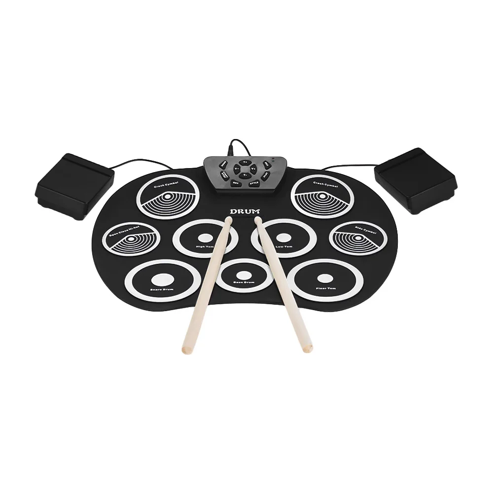 Характеристики:Цвет: черный + белыйМатериал: силикон + пластикТона барабанной установки: поп, рок, латина, электро, перкуссияДемо-песни: POP, Funk, латинские, танцевальные, Самба, ча-ча, качели Hi-Hat, Upbeat RockПитание: 2 * батарейки типа "ААА" (не входит в комплект) или USB-кабель (входит в комплект)Размер товара: 38,5*34,5*3 см/15,2*13,6 * 1.2inВес изделия: 495 г/17,5 унцииПосылка: 42,5*37*4 см/16,7*14,6 * 1.6inВес посылка: 1125 г