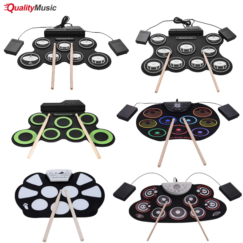 Набор барабанных подушек цифровой, электронный, компактный, складной, USB 7, силиконовая, с педалью