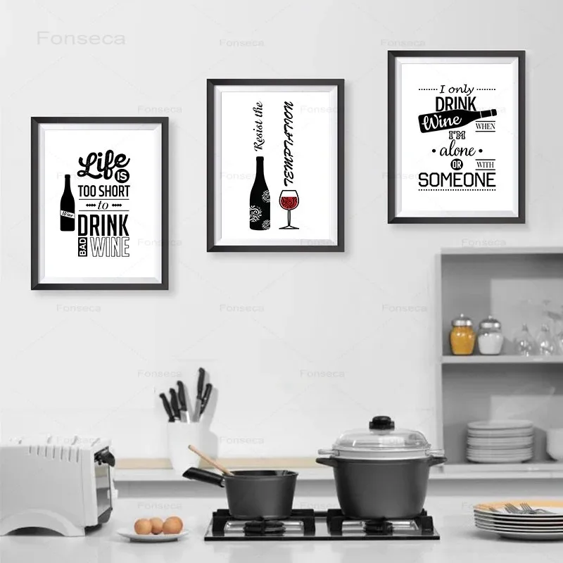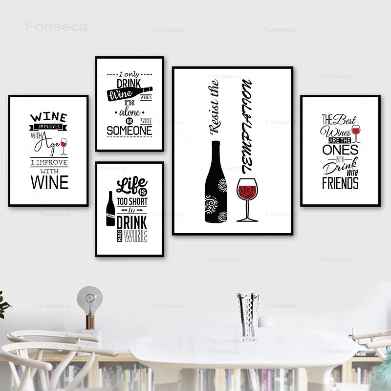 Черно-белая абстрактная красное вино художественная живопись плакат Кубок настенная Печать Современные настенные картины для бара кухни домашнее украшение