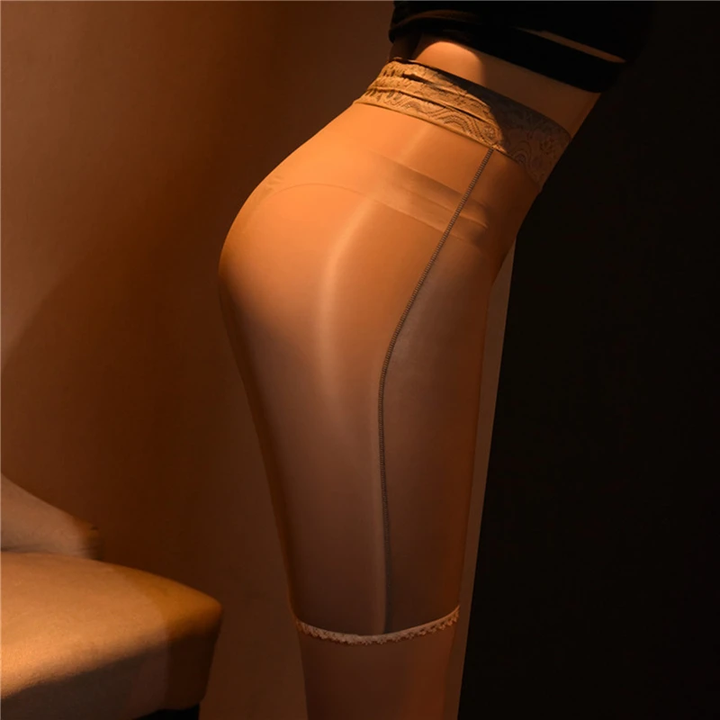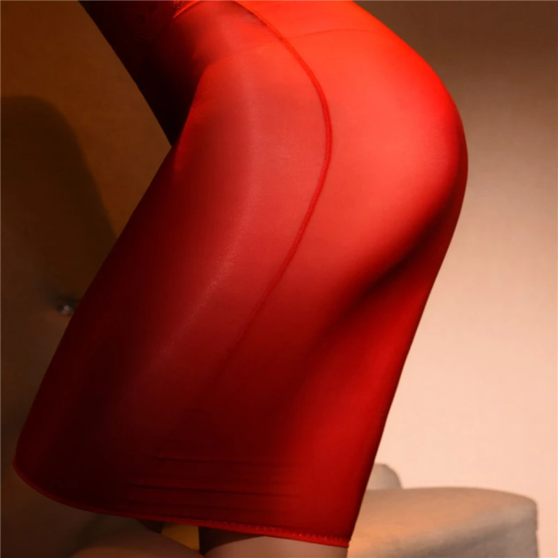Масляная блестящая кружевная нейлоновая юбка-карандаш с завышенной ...
