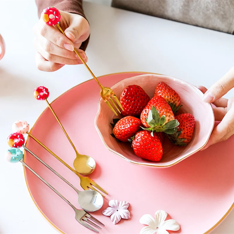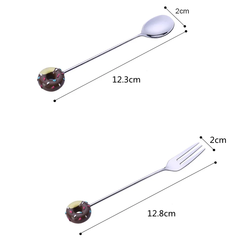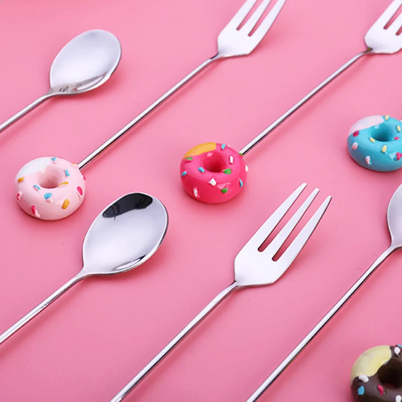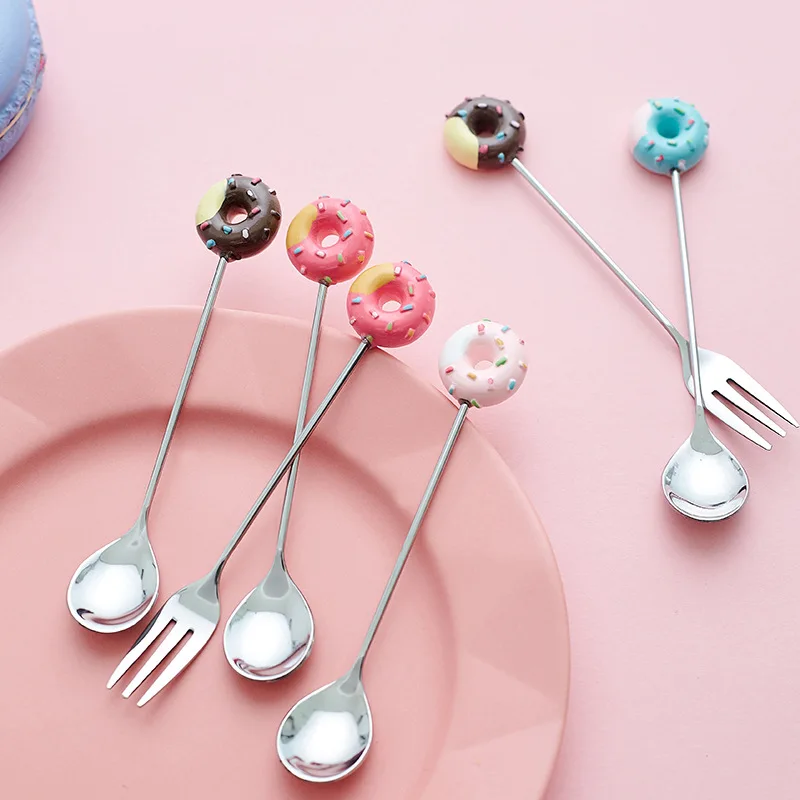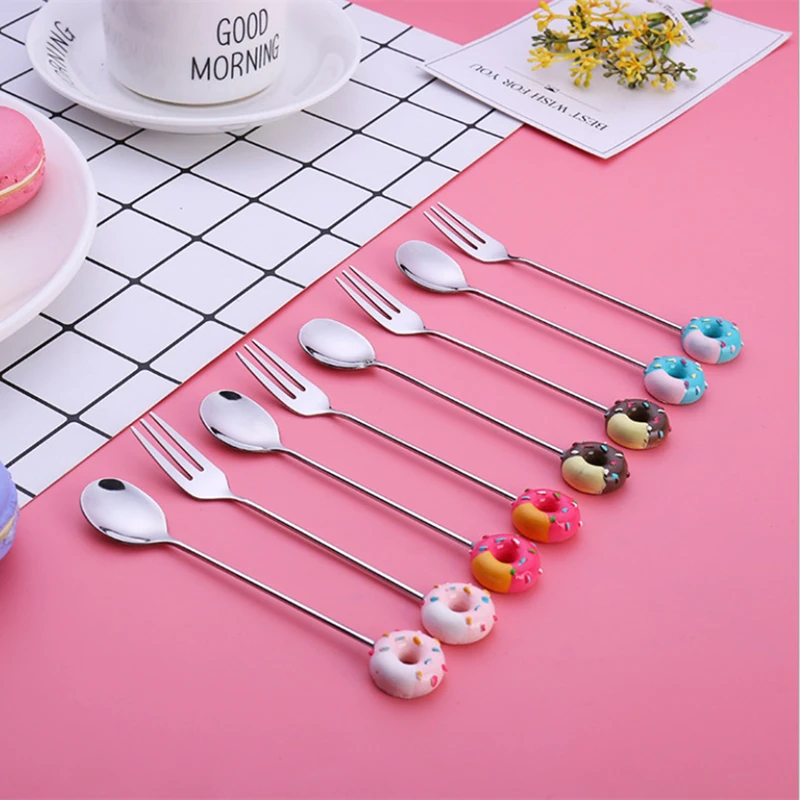 1 шт творческие способности Нержавеющаясталь пончик десерт помешивая ложкой вилка Кофе мороженое кухонная чайная ложка, столовые приборы для малышей и детей постарше столовая посуда
