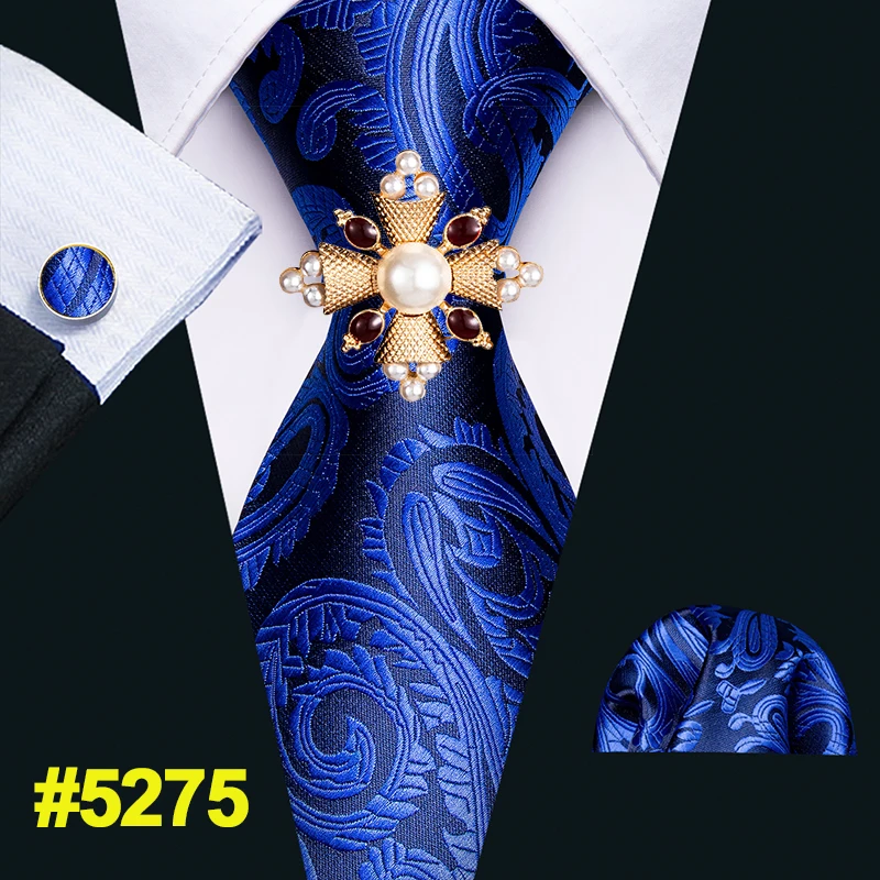 Синий однотонный Шелковый мужской галстук, набор брошей, Свадебный галстук, запонки, галстук, 8,5 см, модные дизайнерские галстуки для мужчин, вечерние