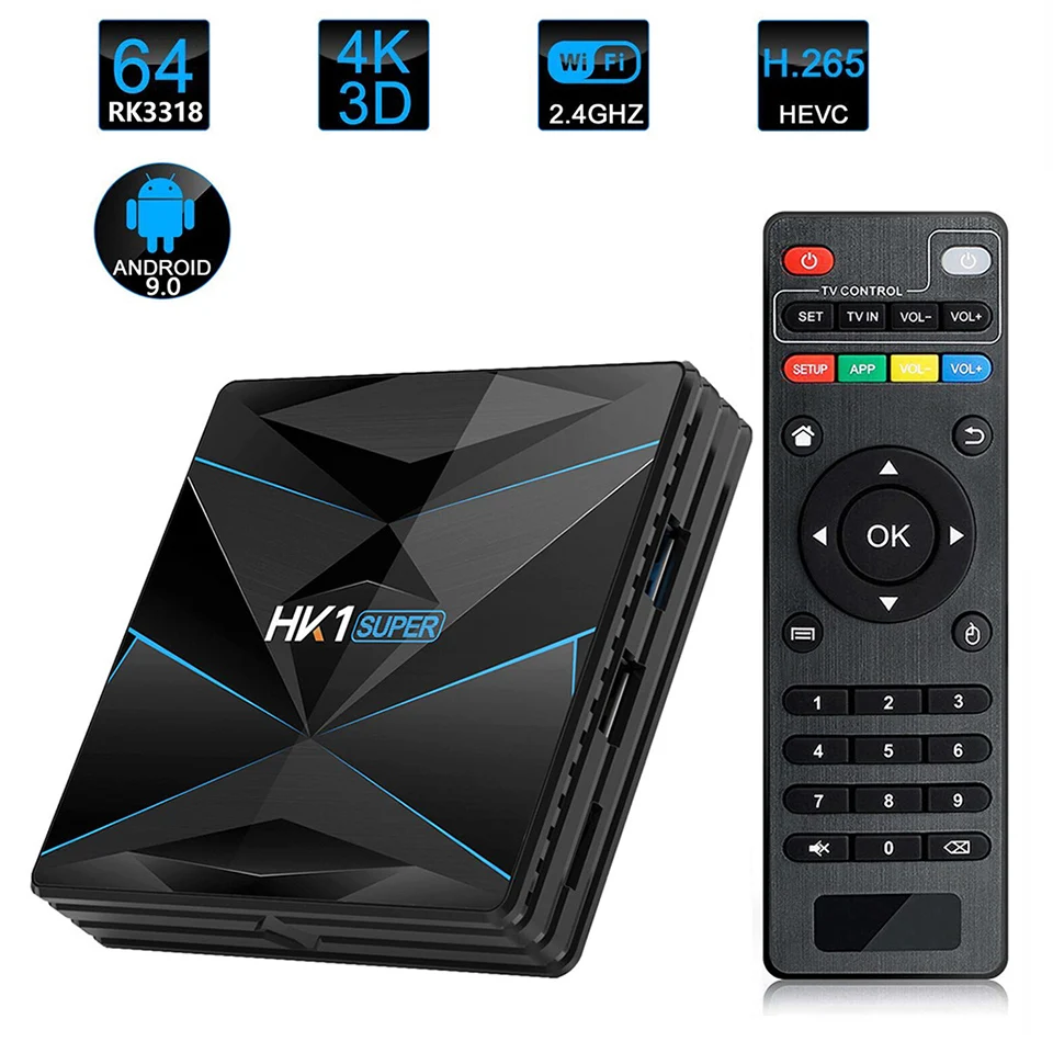 ТВ-приставка HK1 Super Android 9,0 RK3318 четырехъядерная 4K 3D медиаплеер 4G 32G64G 2,4G5,8G Dual Wifi 100M 2G 16G ТВ-приставка