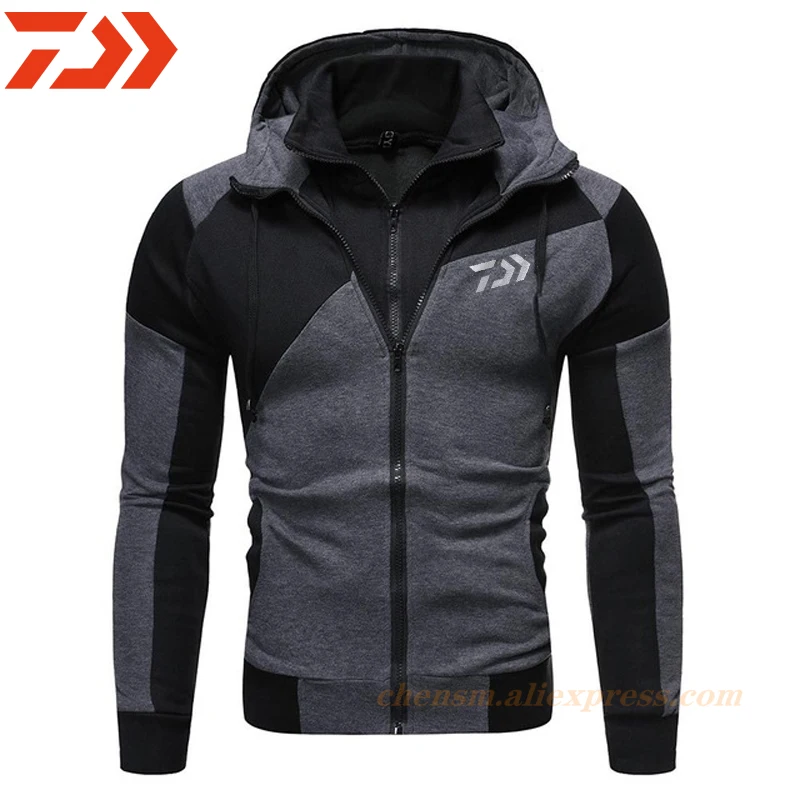 Осень-зима 2021, новая мужская куртка Daiwa, приталенная куртка на молнии с капюшоном, однотонные хлопковые толстые теплые толстовки, пальто для рыбалки, одежда, топы
