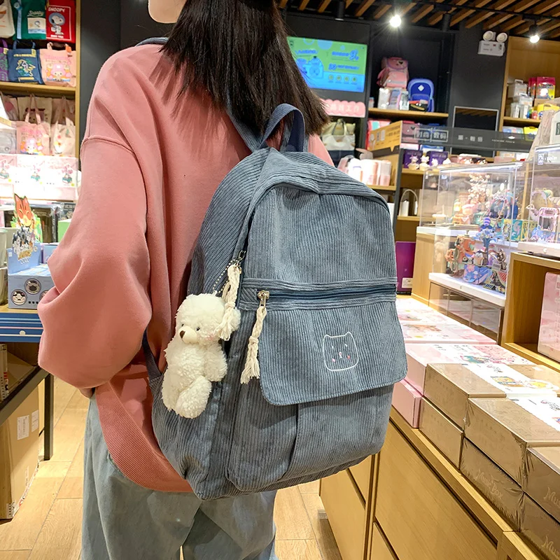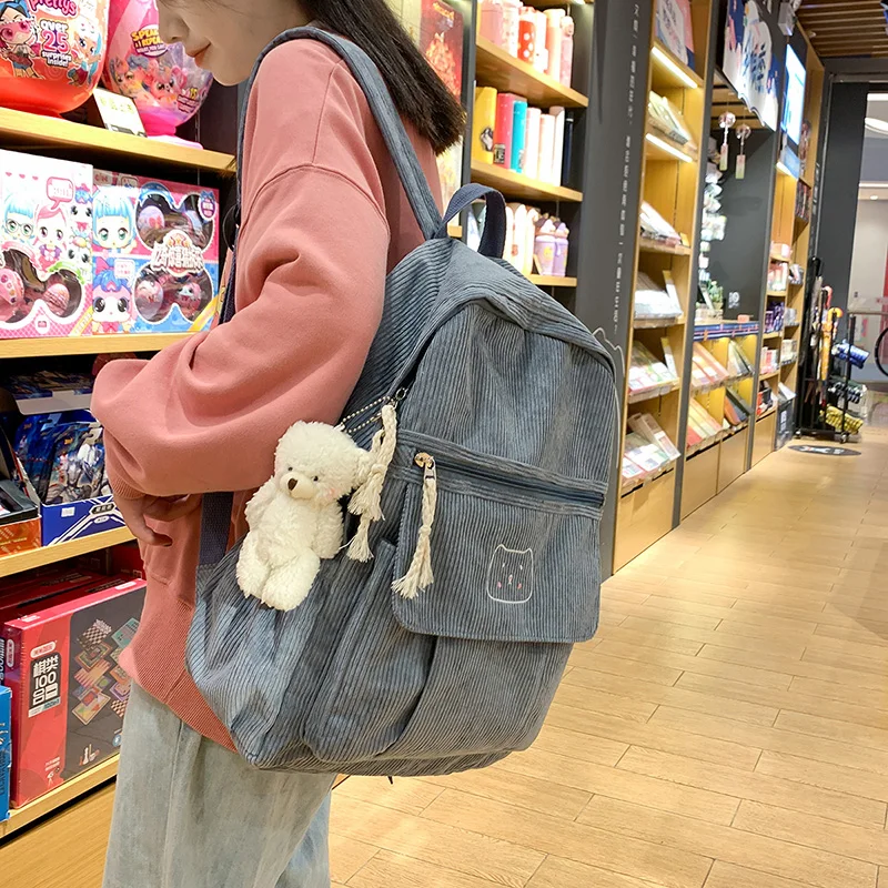Рюкзак женский, вельветовый, однотонный, для девочек-подростков