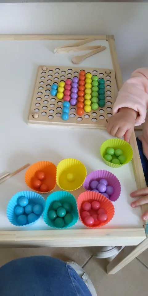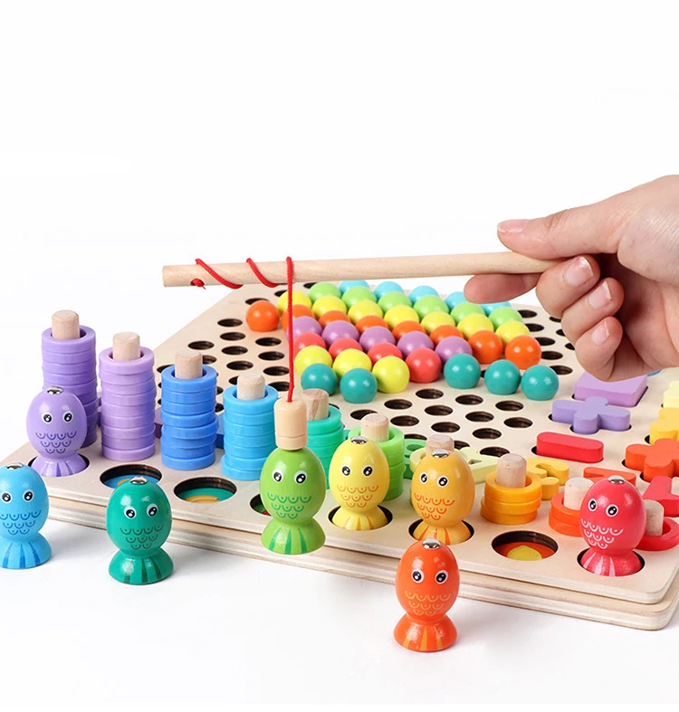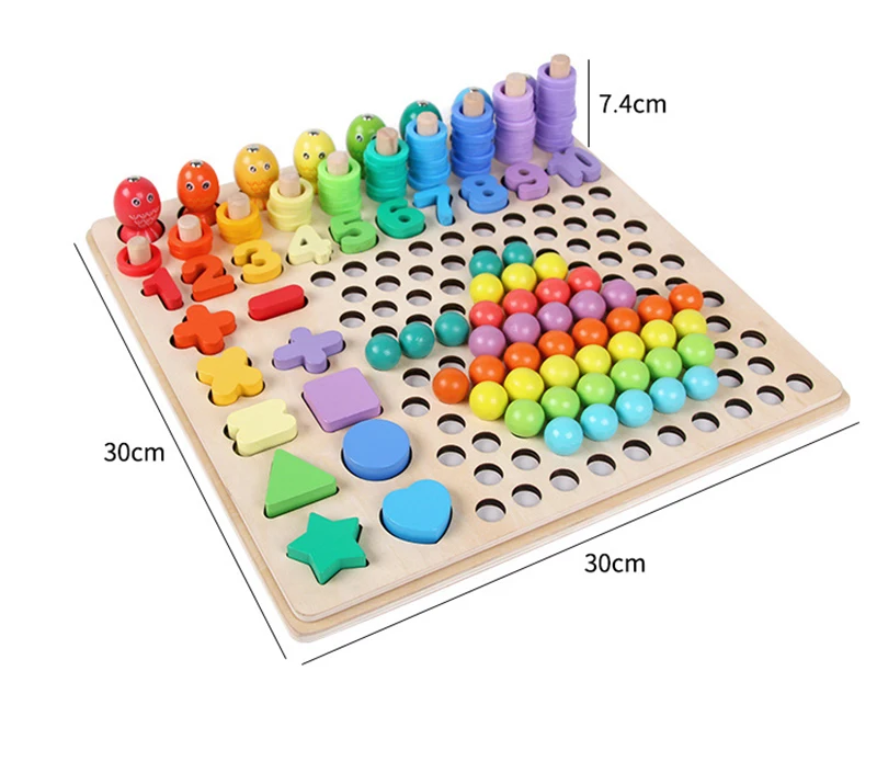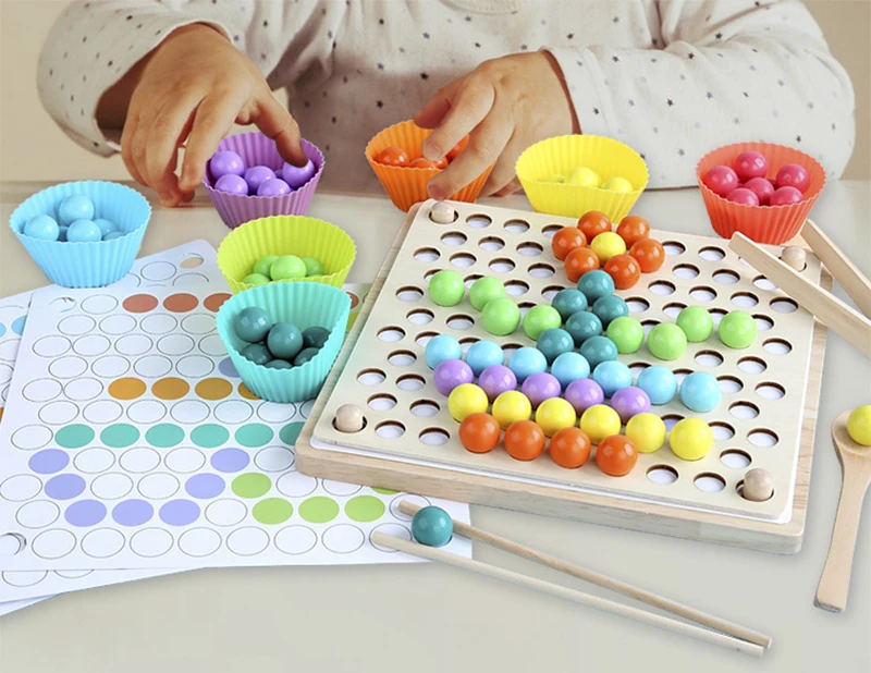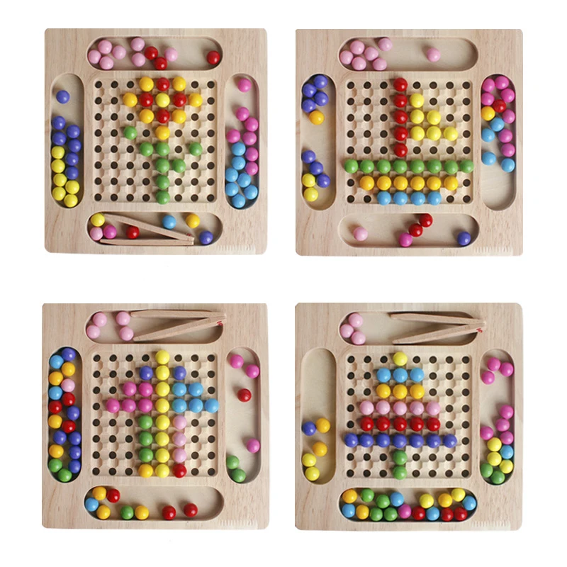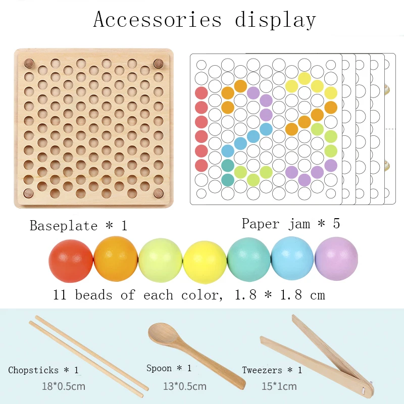 Настольная игра "сделай сам", зажим в форме шарика бусин, мелкая моторика, деревянная, по методике Монтессори, разные цвета, обучающие игрушки