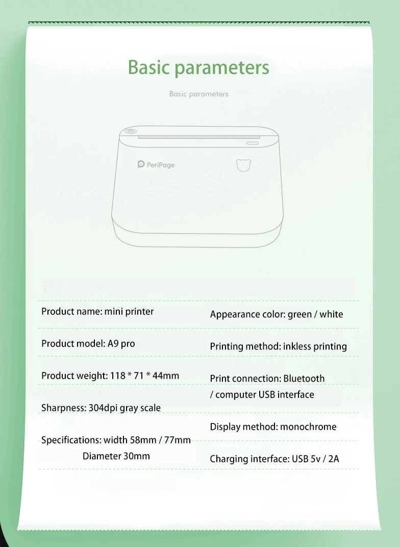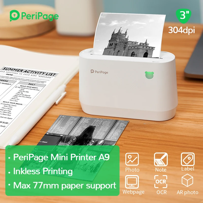 Портативный термопринтер PeriPage, Bluetooth, 304 точекдюйм, термопринтер для фото-и этикеток, для Android, IOS мобильный телефон, A9