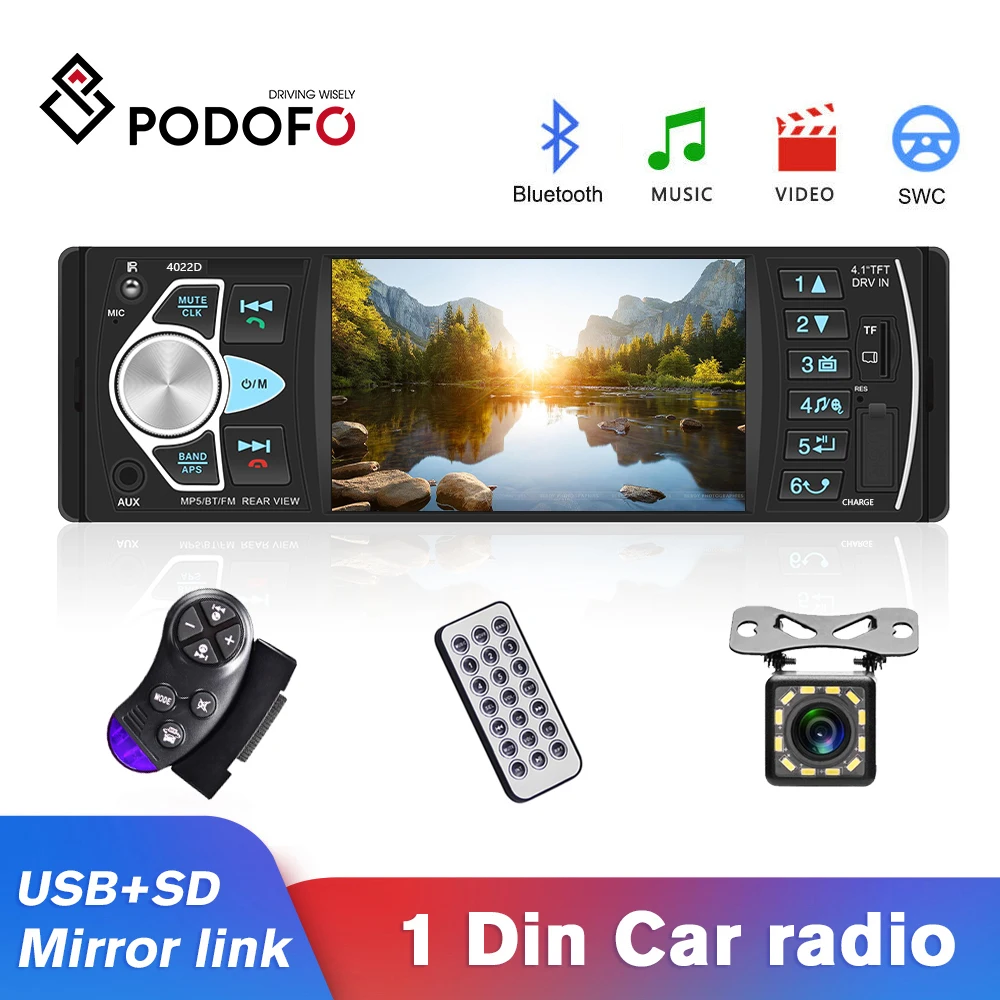 Podofo Autoradio 4022D 4,1 "Универсальный 1 Din автомобильный Радио Аудио стерео USB AUX FM Аудио плеер радио с рулем Wheeling Remote