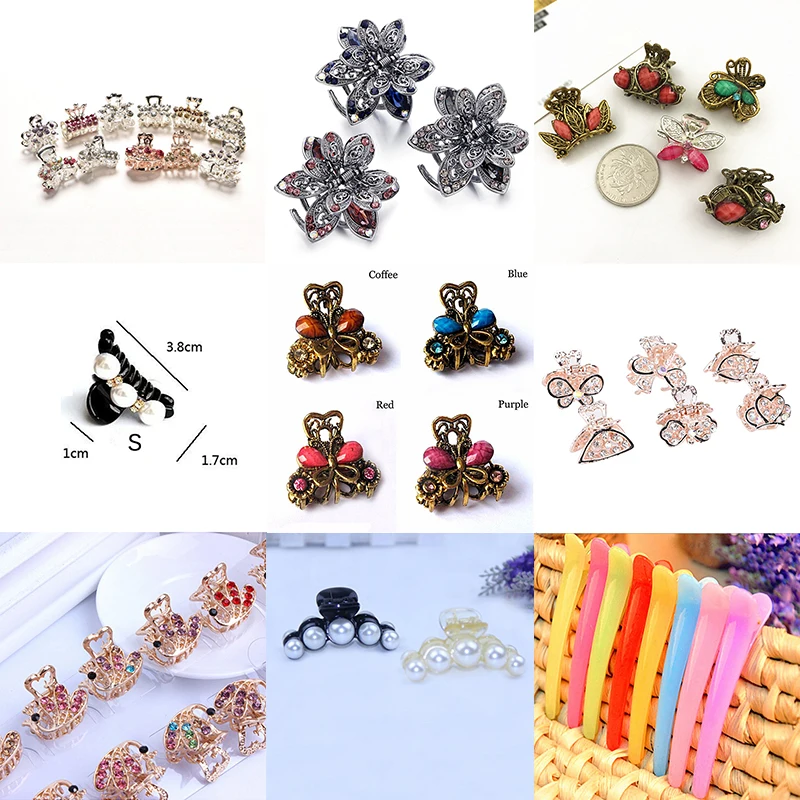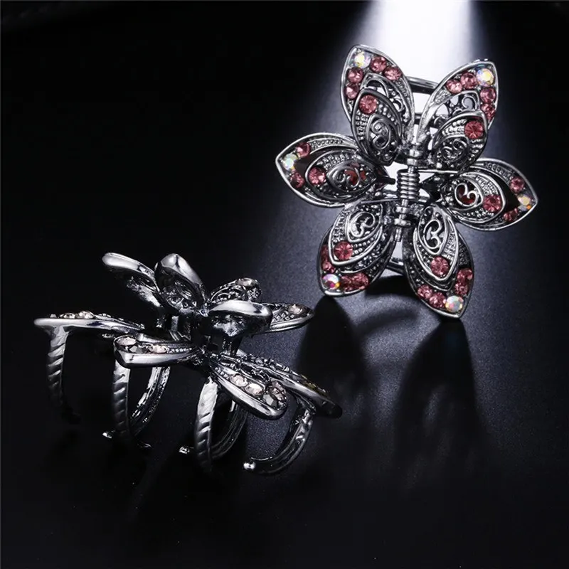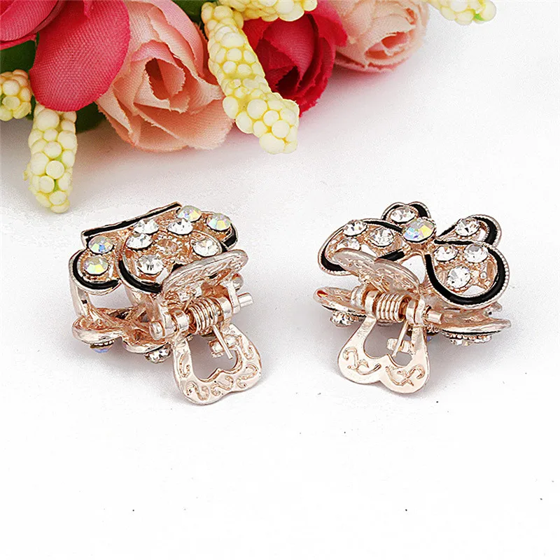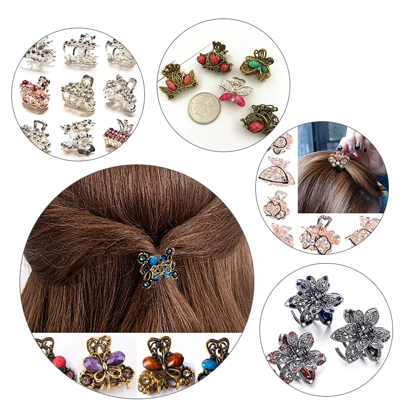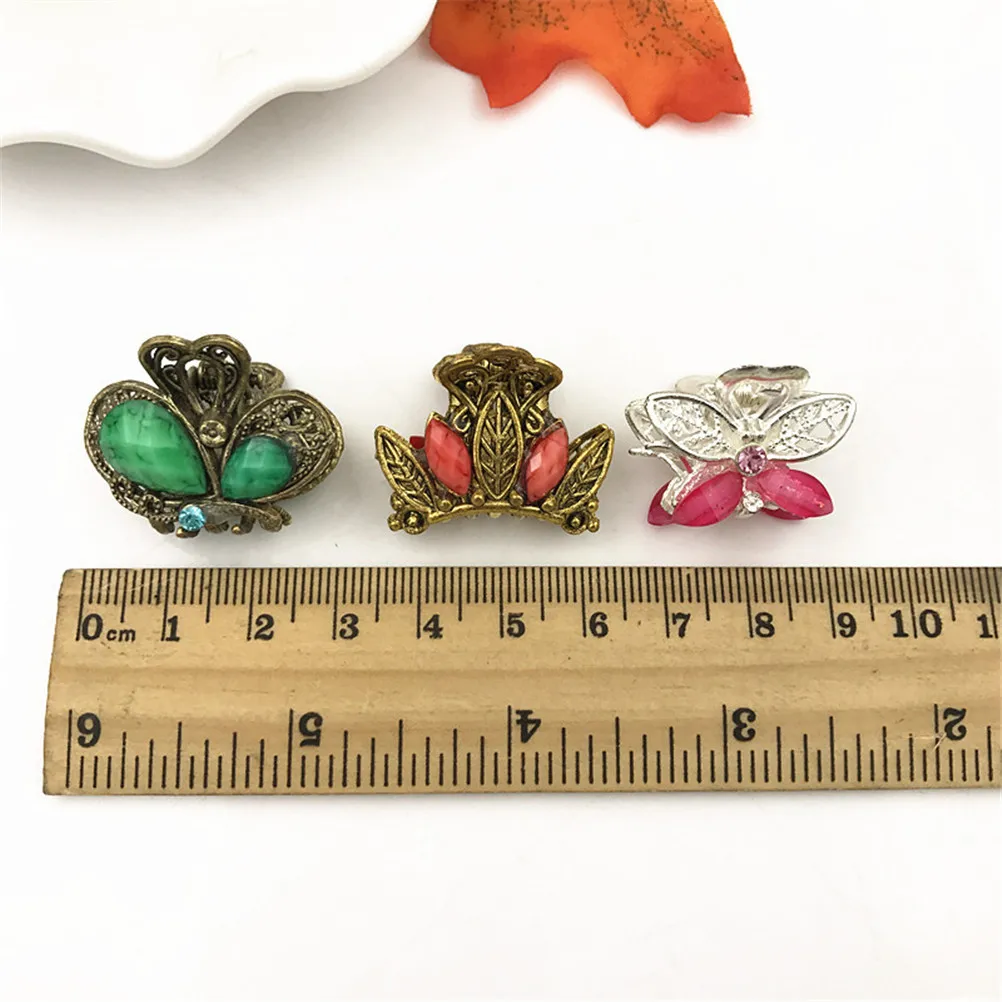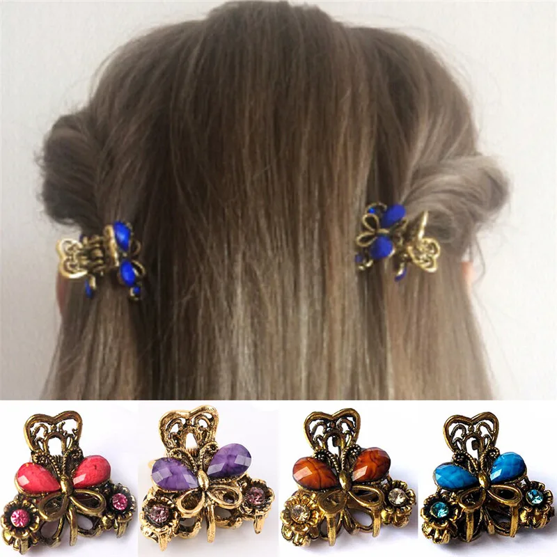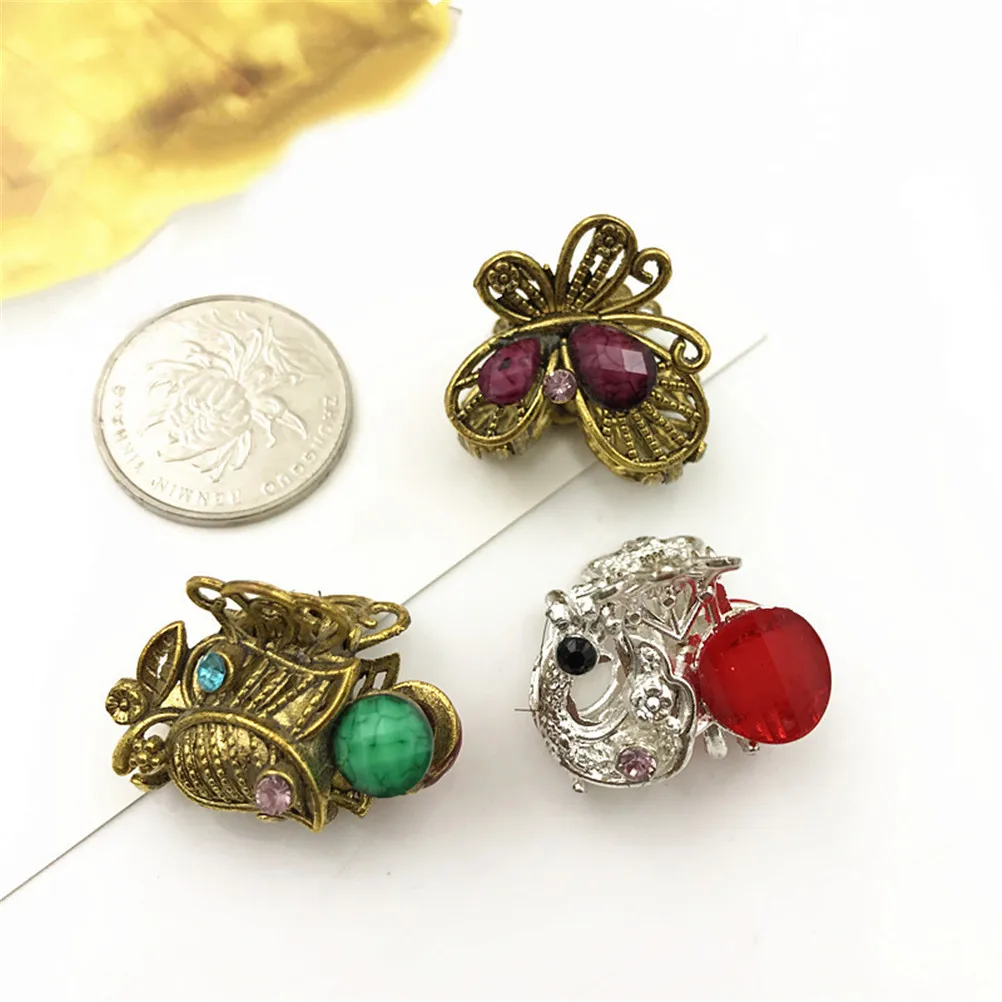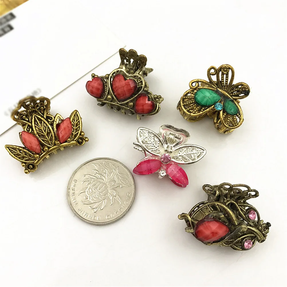 Заколка для волос в стиле ретро Женская, мини-Заколка-краб для волос с бабочками, цветами, хрустальные шпильки для волос, 1 шт.